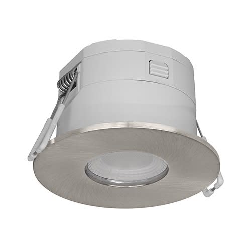 Spot encastré rond fixe 4 en 1. 2700K, 3000K, 4000K ou 6000K au choix via un interrupteur à l'arrière du luminaire. Fixation par ressorts. Peut être recouvert par un isolant déroulé ou soufflé. Double bornier automatique. Dimmable, compatible avec variateur fin de phase. Driver ou source de remplacement disponibles séparément.