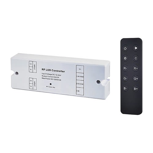 Contrôleur RGB 24Vdc livré avec télécommande.