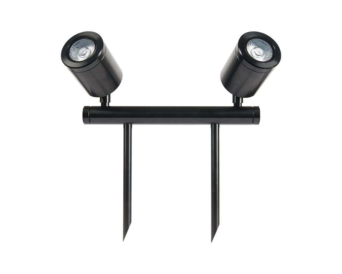 Têtes orientables parfaites pour éclairer des arbustes, des arbres ou d'autres éléments du paysage Piquets facile à installer dans le sol avec un seul câble pour une installation rapide Finitions élégantes et discrètes en noir et bronze Disponibles en 230V et en basse tension Rendement lumineux élevé jusqu'à 93lm/W