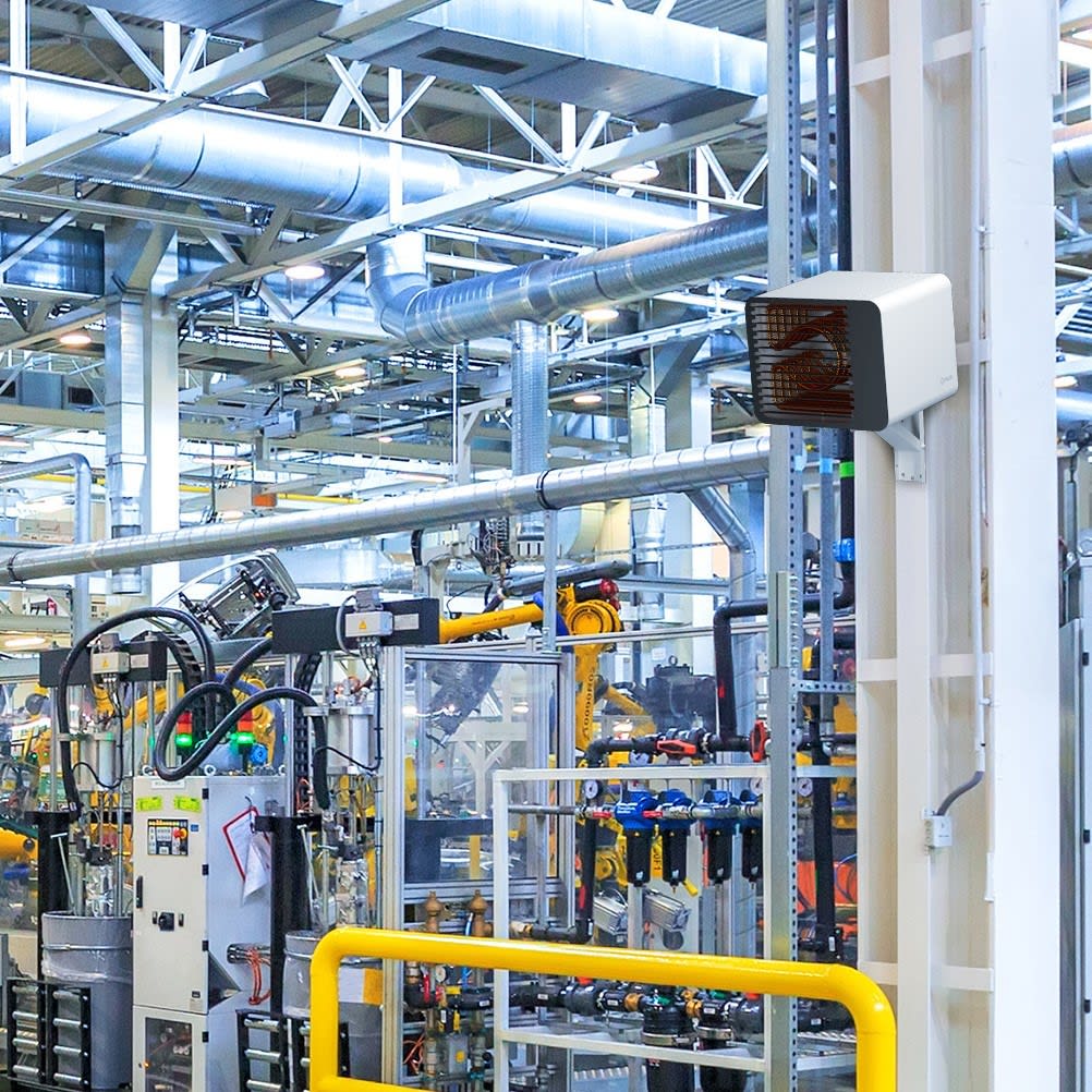 Sa construction aéraulique combinée à un bloc propulseur équipé de résistances blindées à ailette spiralées garantissent un flux d'air de température homogène sur de longues portées Choix de la puissance de chauffe en fonction des saisons et choix de la vitesse de ventilation en fonction de l'implantation des aérothermes et du ressenti des utilisateurs Installation au mur ou au plafond grâce à son support multidirectionnel, ou sur pied grâce à un kit dédié, il est raccordable en série (20 appareils max) et pilotable à distance avec un boîtier optionnel (liaison 2 fils polarisés) Aérotherme certifié par le label OFG (Origine France Garantie). Il garantit que la majorité des opérations de production est faite en France