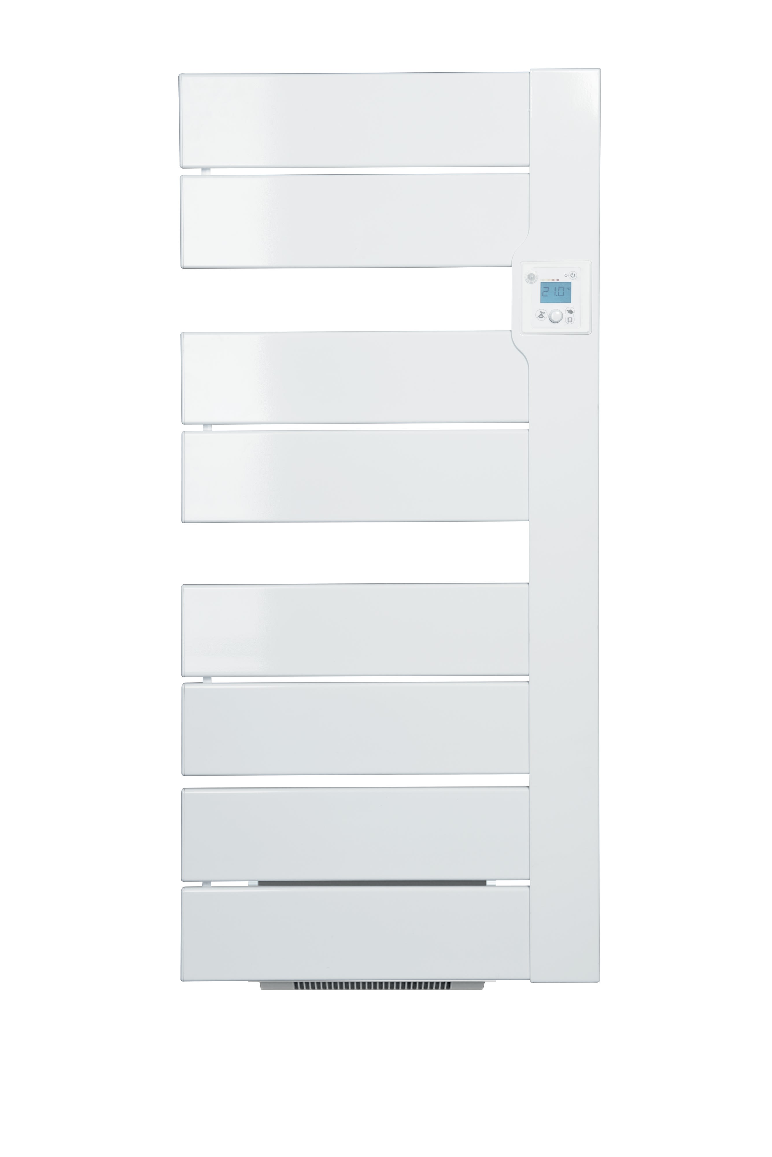 Un design conçu pour la salle de bains . La forme asymétrique facilite la pose des serviettes. La commande digitale est accessible à portée de main. Choix de finitions : blanc) et bicolore blanc avec profil gris anthracite Adapté aux salles de bains de tailles moyennes. 2 modèles statiques de 500 et 650 W et 2 modèles avec soufflerie en acier intégrée à l'arrière de l'arrière qui délivre 1000W de chaleur ponctuelle en cas de besoins. Régulation électronique ultra précise, détection de présence. Fonction SMART BOOST BALICA est équipé du meilleur niveau de régulation pour piloter avec intelligence les salles de bains aussi finement qu'une pièce à vivre. Une gestion facile des économies d'énergie en mode local ou depuis un smartphone en mode connecté, grâce à l'application intuis connect with Netatmo.*