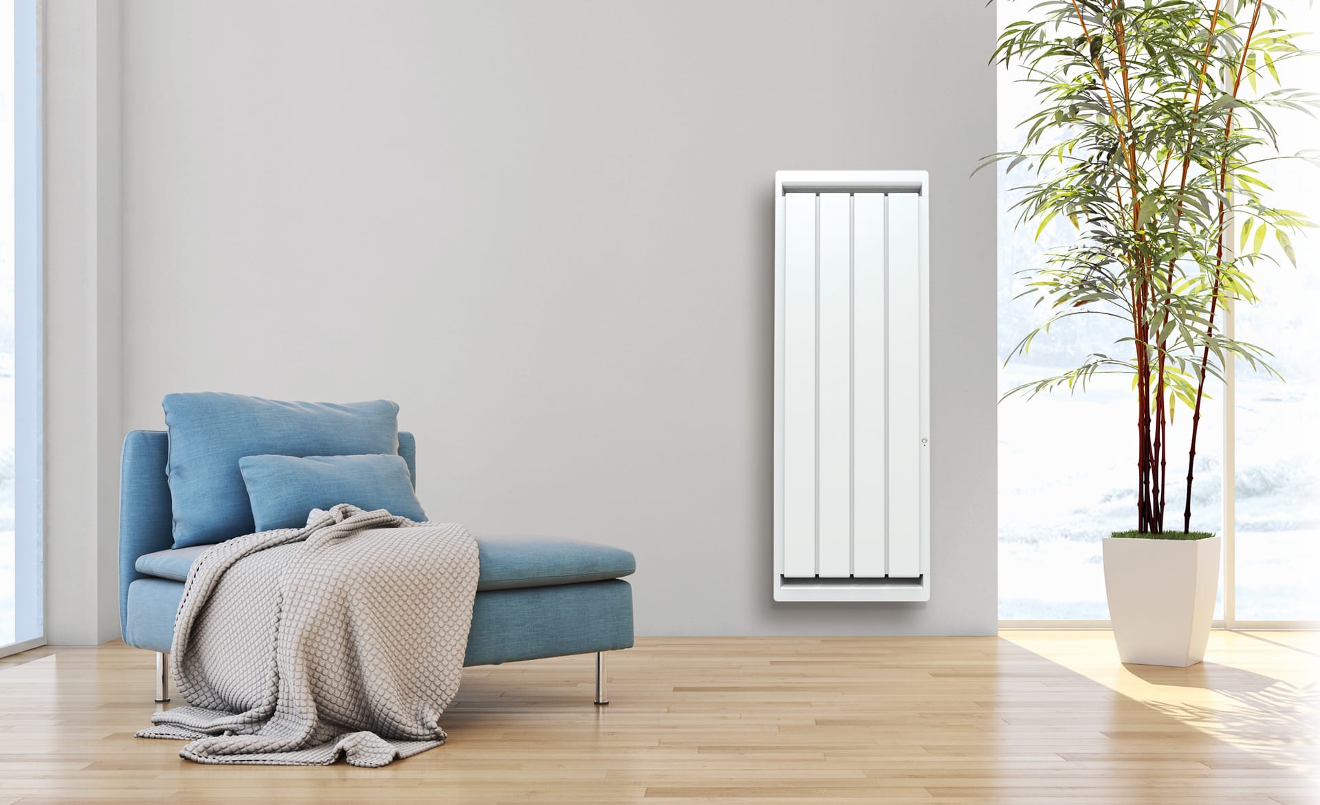 Radiateur électrique Chaleur douce Fonte active avec priorité façade. Il est doté de l'intelligence Muller Intuitiv. Ce radiateur électrique est certifié Origine France Garantie