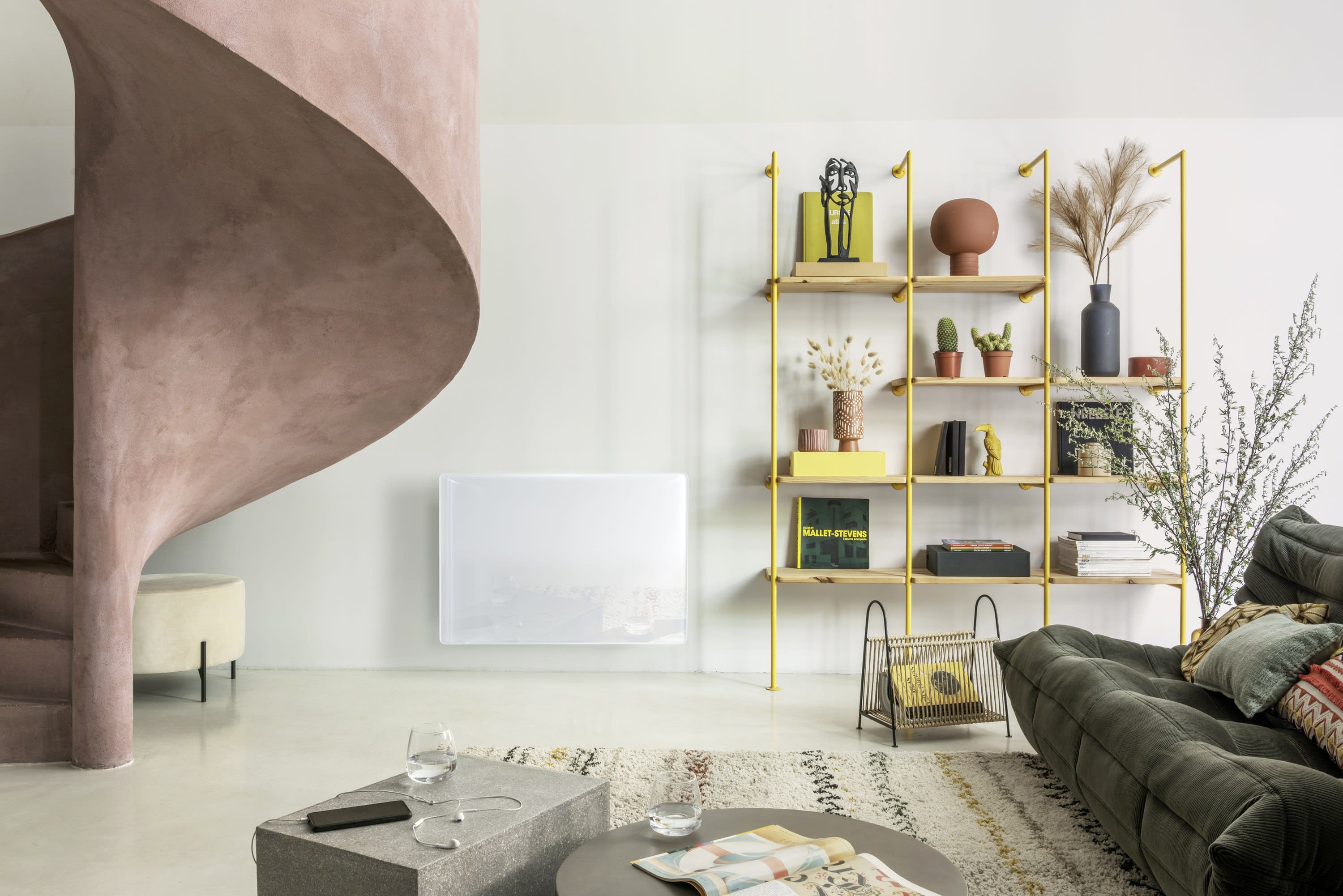 Chaque radiateur est un élément de décoration d'intérieure à part entière. La gamme se décline en 3 formats vertical , horizontal et plinthe et 3 finitions .brillantes. Noir Astrakan, Blanc Lys et Reflet* Le double effet CAMPA** assure un parfait équilibre entre l'inertie de la façade en verre épais de 8 mm qui diffuse prioritairement une chaleur douce et enveloppante et les éléments chauffants réactifs arrières pour les montées en températures rapides. Les modèles verticaux étroits et de hauteur unique de 1,65 m, présentent une proportion idéale pour encadrer les baies vitrées dans un salon et lutter avec élégance contre les effets de parois froides. Nouvelle interface de réglage nativ avec son écran graphique couleur, sa connectivité simplifiée et ses nouvelles fonctions d'économies d'énergie. A noter la fonction d'auto-effacement*** des heures de pointes pour un usage responsable de l'électricité.