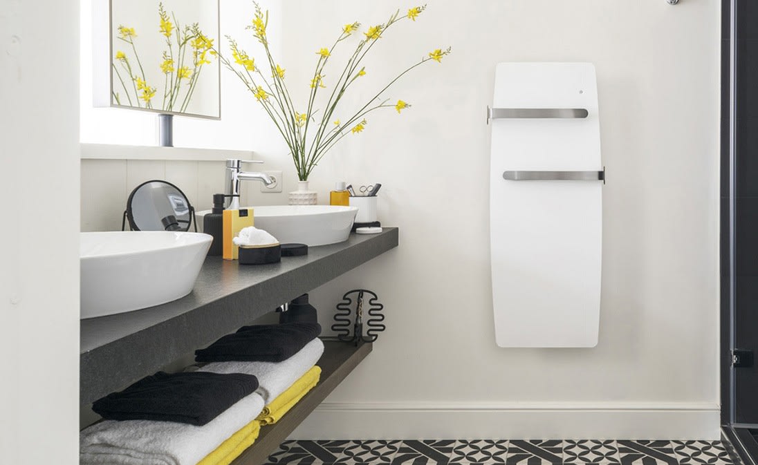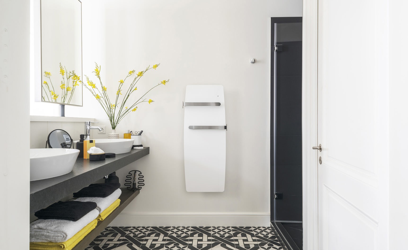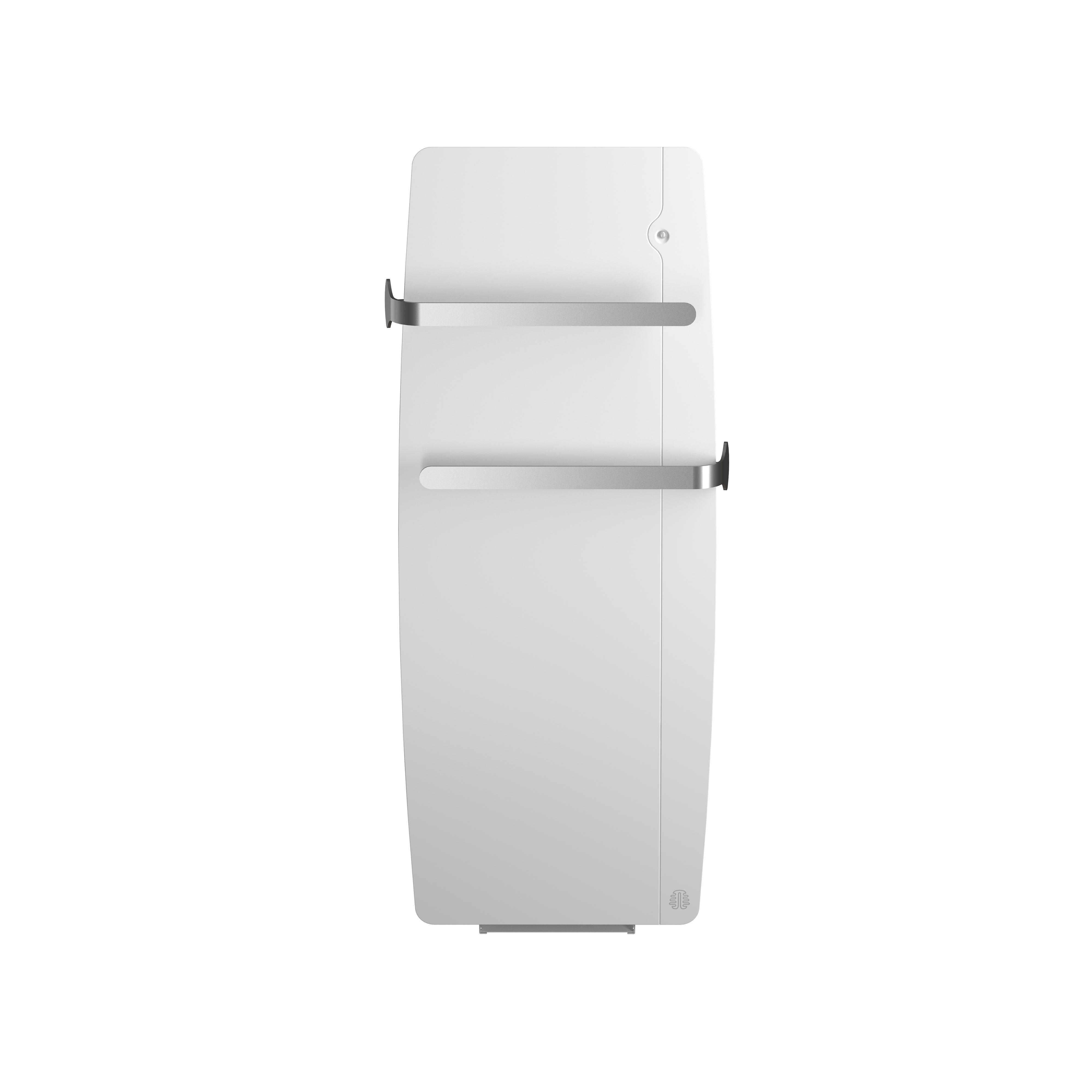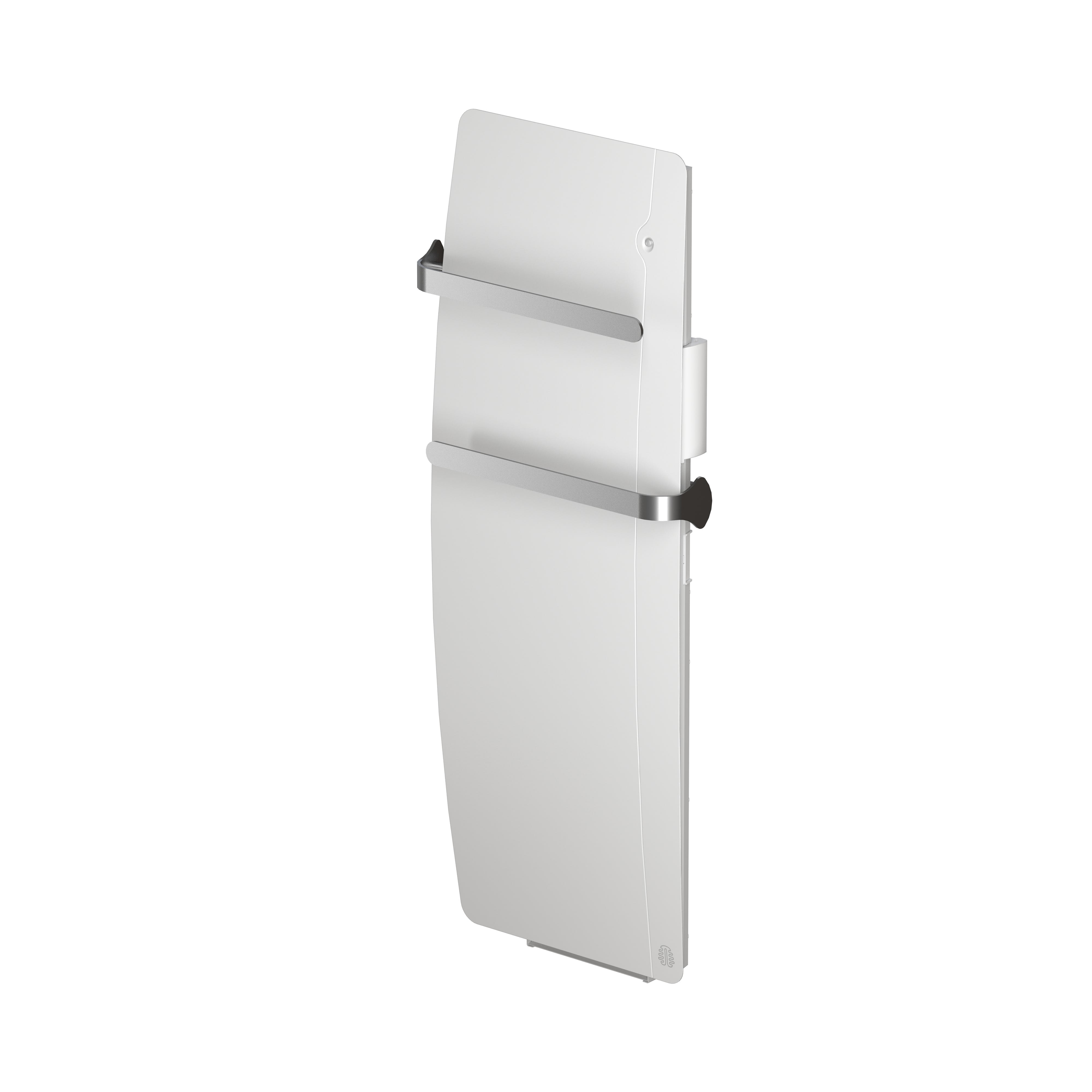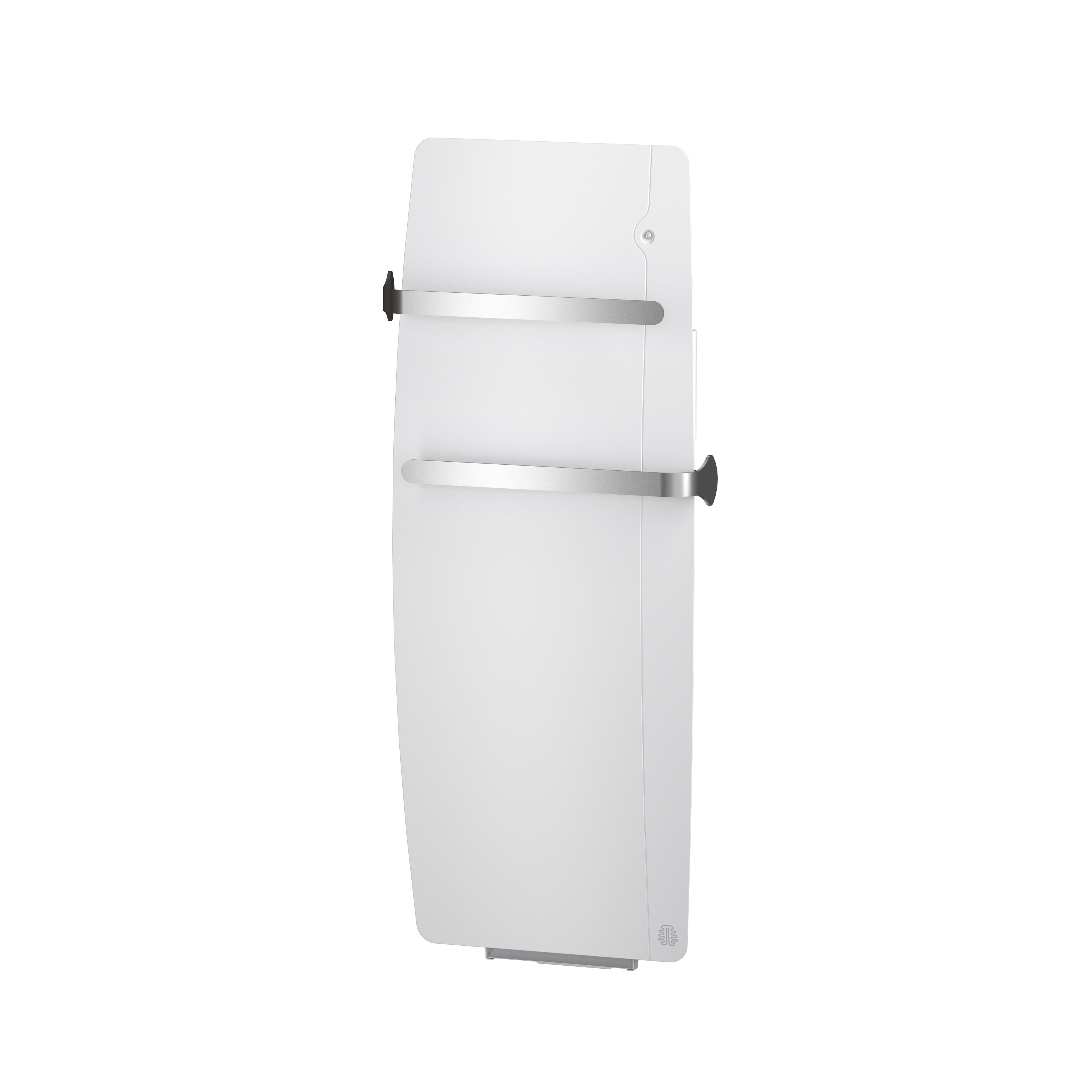 La surface lisse légèrement galbée diffuse 700 W de chaleur douce idéale pour le confort des salles de bains de tailles moyennes. Une soufflerie de 800 W en acier totalement intégrée assure les mises en chauffe instantanées et le séchage après le bain. Une très belle capacité d'étendage: ETIC bain dispose de 2 barres d'étendage en inox brossé avec accroche peignoirs intégrés. Pratiques elles se positionnent à gauche comme à droite et à différentes hauteurs. Régulation électronique ultra précise, détection de présence, mode connecté avec intuis connect* ETIC bain est équipé du meilleur niveau de régulation pour piloter avec intelligence la salle de bains. Un encombrement idéal pour gagner de l'espace en salle de bains: hauteur 1 m pour une largeur de seulement 44 cm. Finition blanc satiné lisse (ral 9003) très agréable au touché et peu salissante.