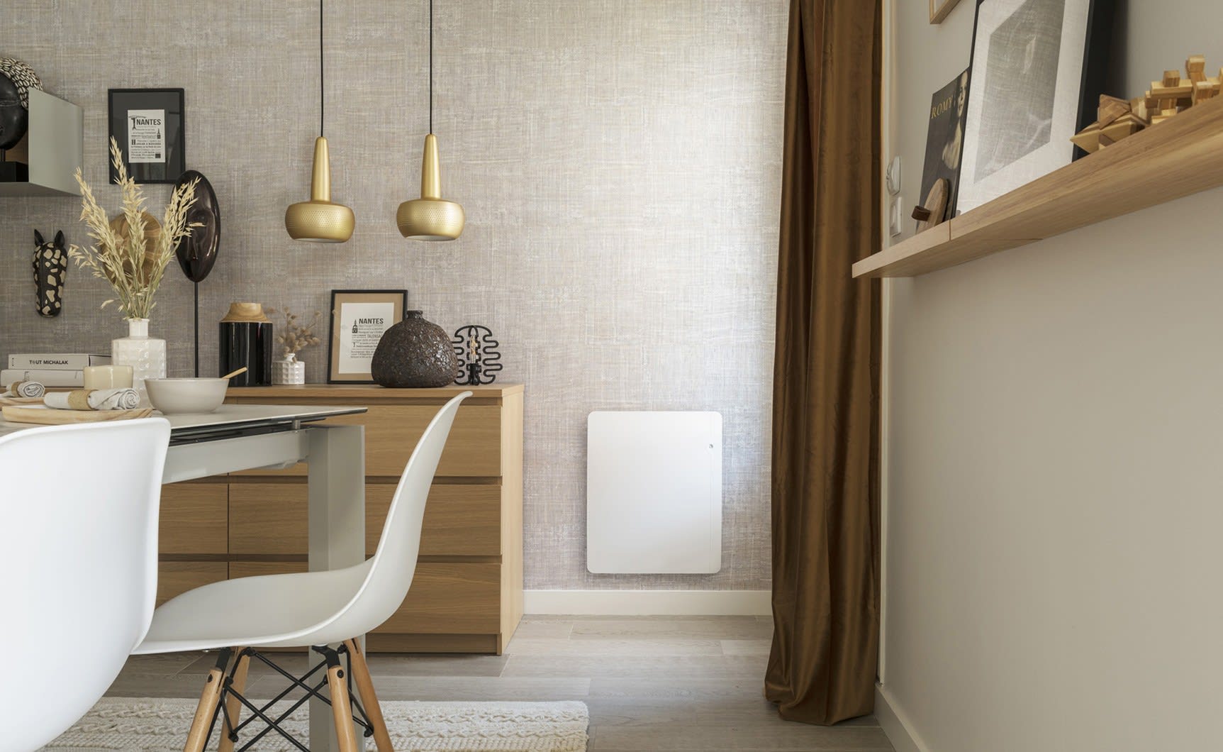 La technologie double élément chauffant avec façade prioritaire, garantie la permanence d'une sensation de chaleur douce très agréable même à bas régime. Réactif l'élément monobloc aluminium arrière, complète la chauffe en cas de besoin. ETIC est certifié NF performance 3 étoiles oeil . Cette certification garantie le plus haut niveau de performance en matière de confort et de fonctions avancées d'économie d'énergie est recommandée dans le cadre des DPE. Une gestion facile des économies d'énergie en mode local ou depuis un smartphone en mode connecté, grâce à l'application intuis connect with Netatmo.* Un design discret et élégant avec ses facades légèrement galbées. Sa finition bicolore blanc satiné lisse avec un fond gris souris pour adoucir l'emprunte visuelle au mur. Etic se décline en 2 formats, horizontal compact et vertical étroit.