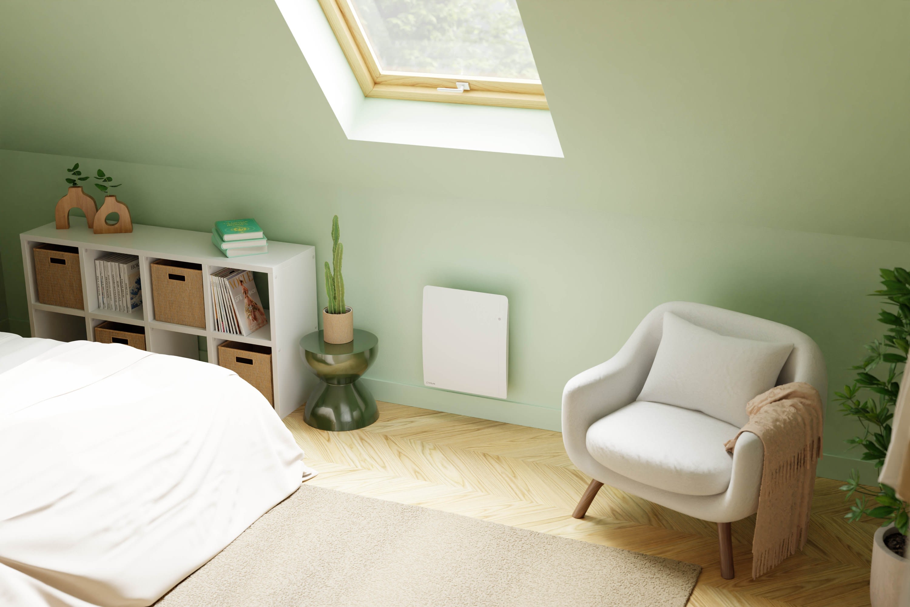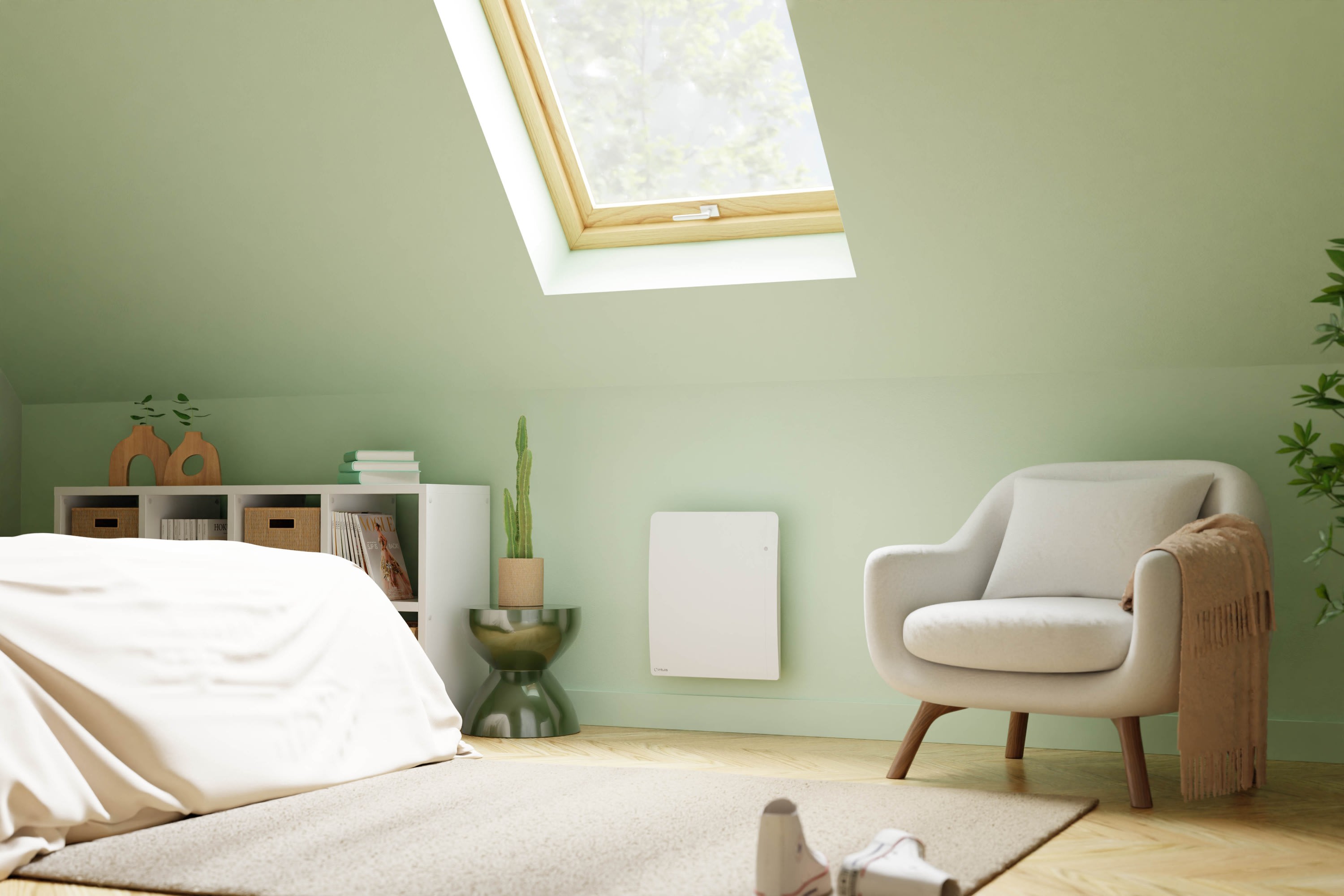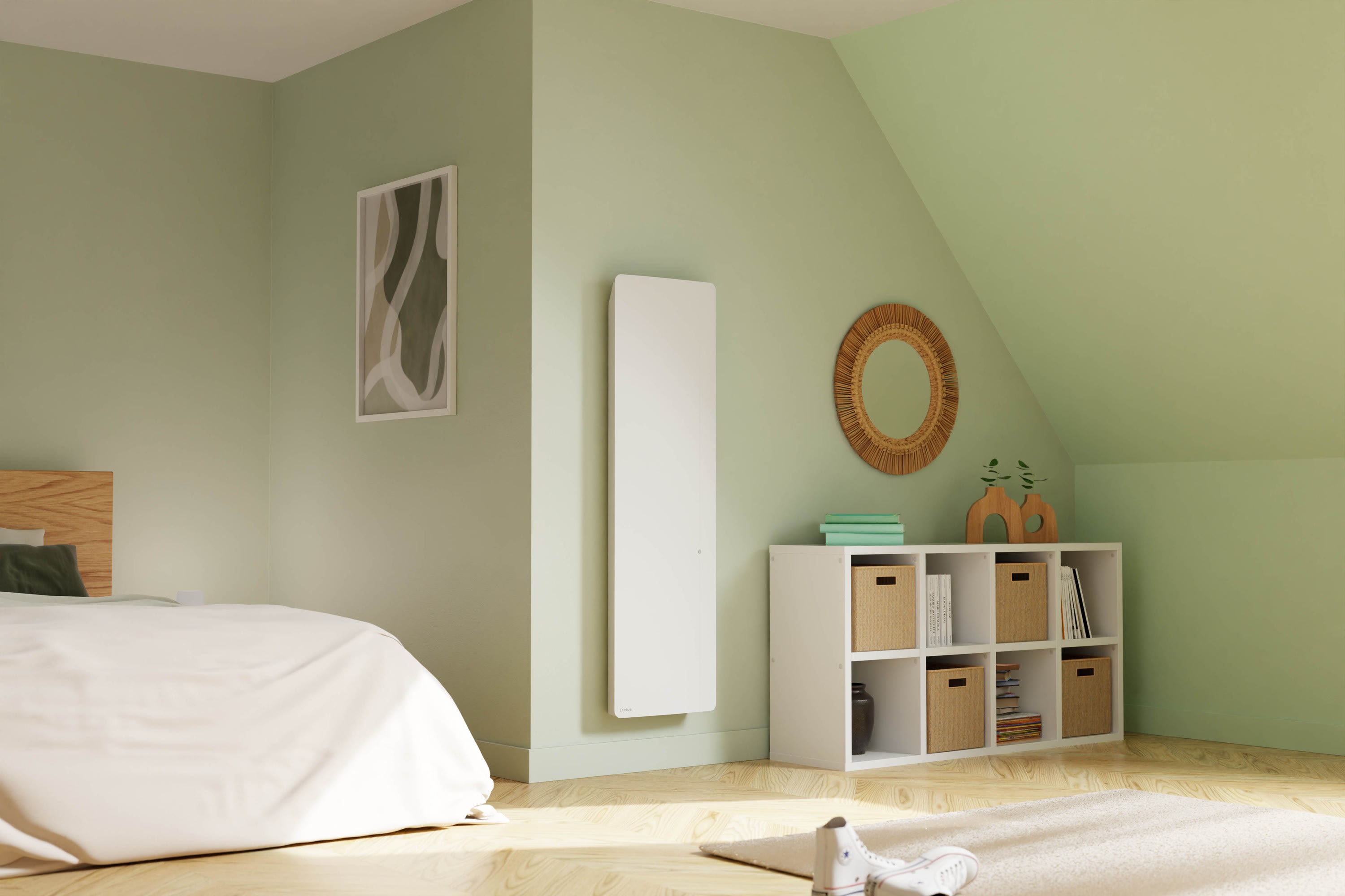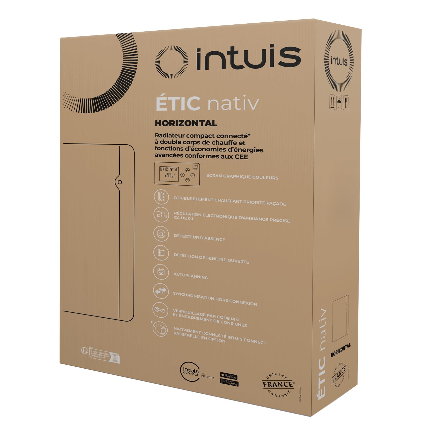 La technologie double élément chauffant avec façade prioritaire, garantie la permanence d'une sensation de chaleur douce très agréable même à bas régime. Réactif l'élément monobloc aluminium arrière, complète la chauffe en cas de besoin. ETIC est certifié NF performance 3 étoiles oeil . Cette certification garantie le plus haut niveau de performance en matière de confort et de fonctions avancées d'économie d'énergie est recommandée dans le cadre des DPE. Une gestion facile des économies d'énergie en mode local ou depuis un smartphone en mode connecté, grâce à l'application intuis connect with Netatmo.* Un design discret et élégant avec ses facades légèrement galbées. Sa finition blanc satiné lisse. Etic se décline en 2 formats, horizontal compact et vertical étroit.