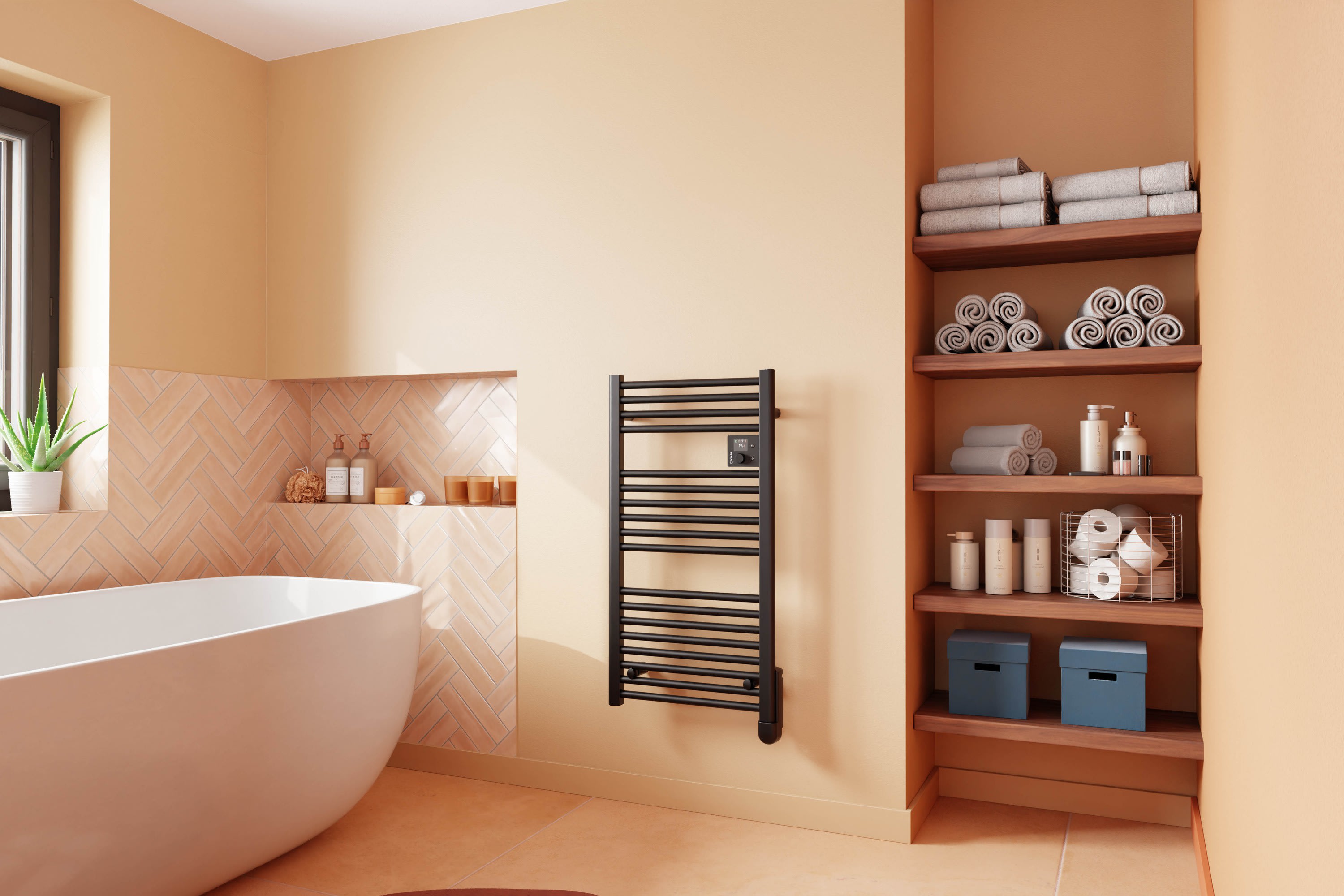 Pratique : conçu pour être recouvert et chauffer et sécher. Le réglage intégré est à portée de main avec écran graphique couleur. Adapté à toutes les salles de bains petites ou grandes. 5 tailles dont 2 modèles étroits pour occuper les espaces restreints. 5 puissances de 300 à 1000W et une version boostée par une puissante soufflerie* pour les montées rapides en température. Des performances adaptées au neuf comme à la rénovation.La gamme est certifiée NF performance 3 étoiles+ œil.La position du réglage en partie haute permet de répondre aux règles d'installation pour les personnes à mobilité réduite (PMR) Une gamme solide, conçue et fabriquée en France.Un corps de corps de chauffe 100% en acier soufflerie comprise