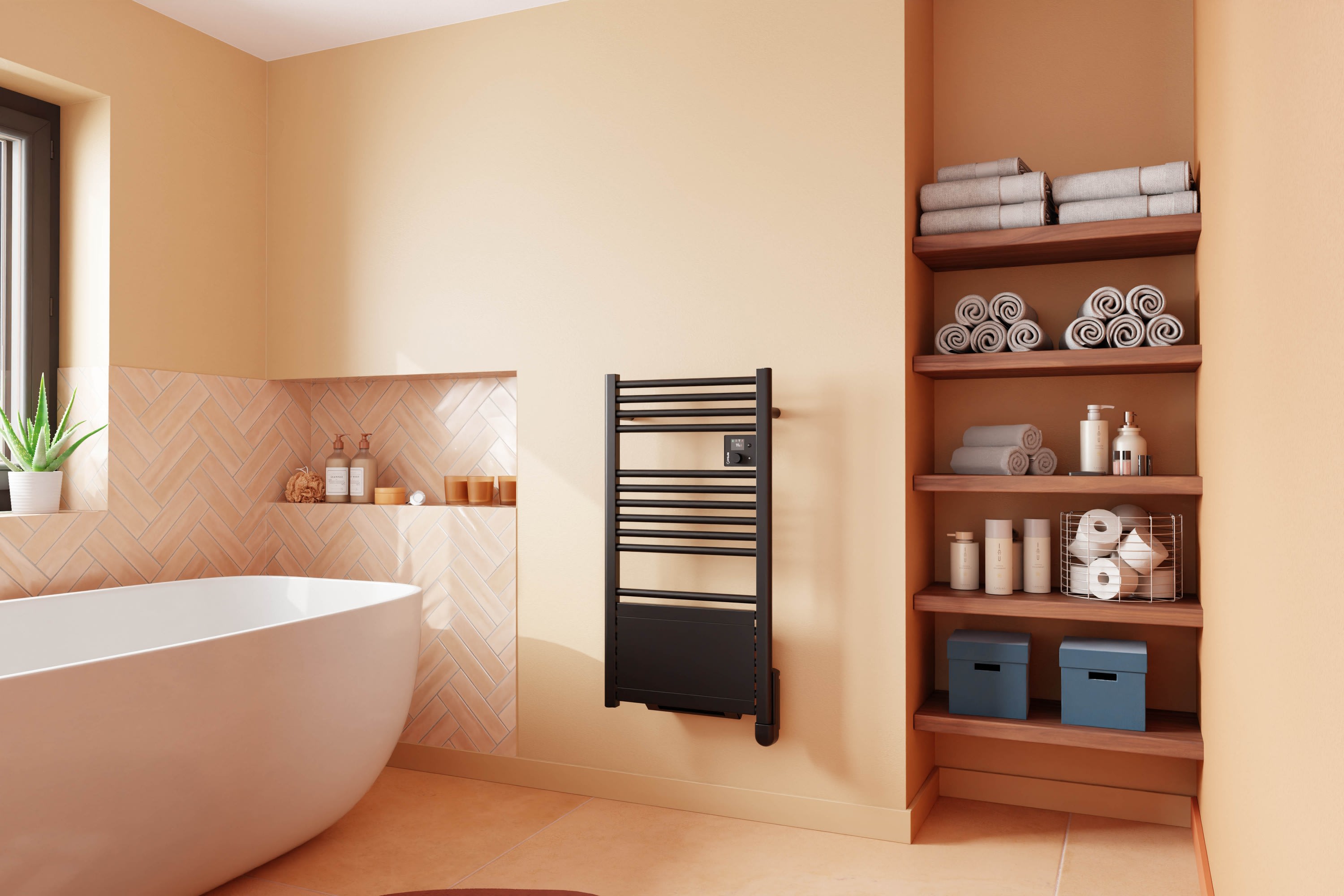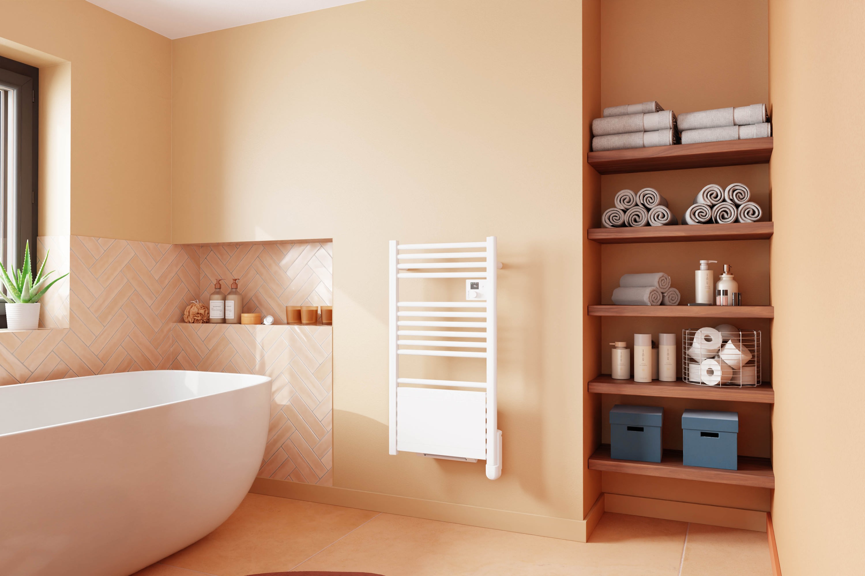 Pratique : conçu pour être recouvert et chauffer et sécher. Le réglage intégré est à portée de main avec écran graphique couleur. Adapté à toutes les salles de bains petites ou grandes. 5 tailles dont 2 modèles étroits pour occuper les espaces restreints. 5 puissances de 300 à 1000W et une version boostée par une puissante soufflerie* pour les montées rapides en température. Des performances adaptées au neuf comme à la rénovation.La gamme est certifiée NF performance 3 étoiles+ œil.La position du réglage en partie haute permet de répondre aux règles d'installation pour les personnes à mobilité réduite (PMR) Une gamme solide, conçue et fabriquée en France.Un corps de corps de chauffe 100% en acier soufflerie comprise