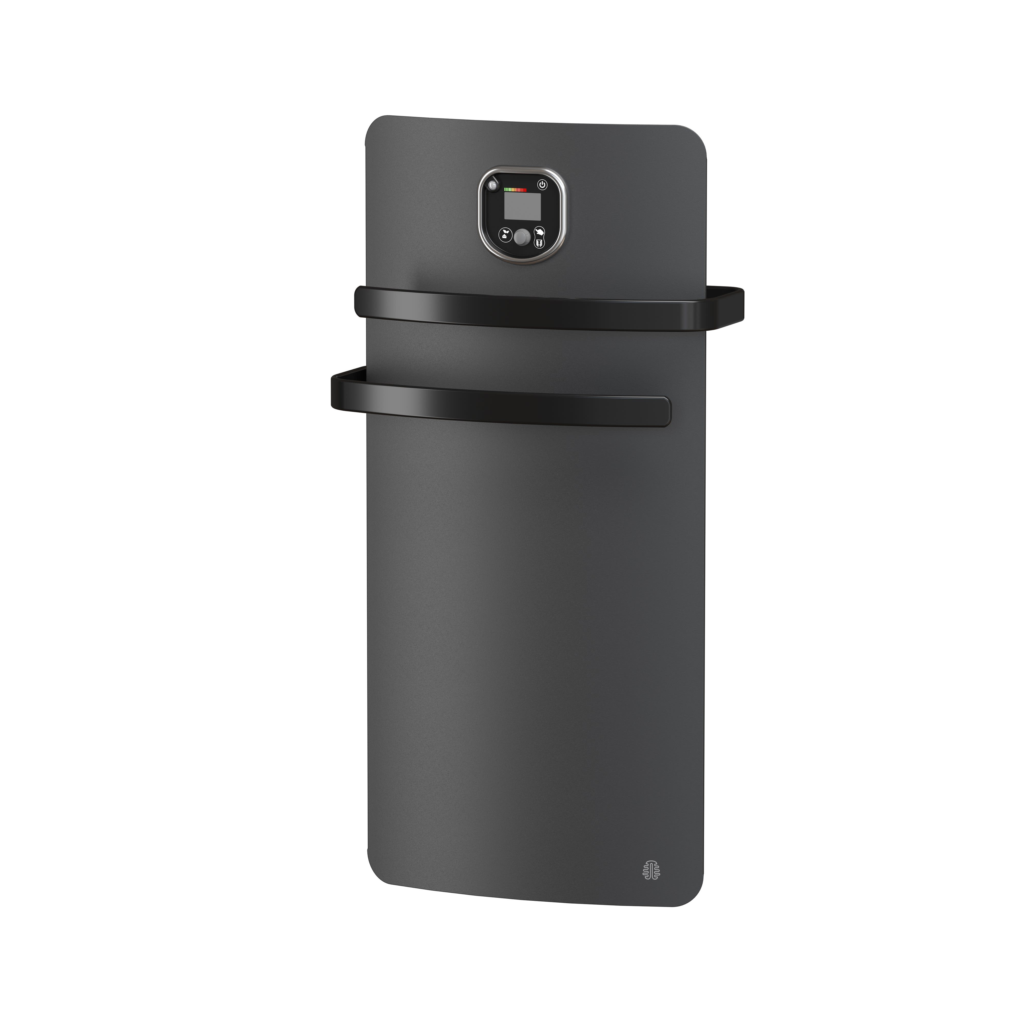 Radiateur sèche-serviettes Helia - 500W + soufflerie 700 W - Anthracite - NF Performance 3*œil - Fonctions d'économies avancées conformes aux CEE - Origine France Garantie - Connectable avec INTUIS CONNECT with Netatmo via fil pilote.