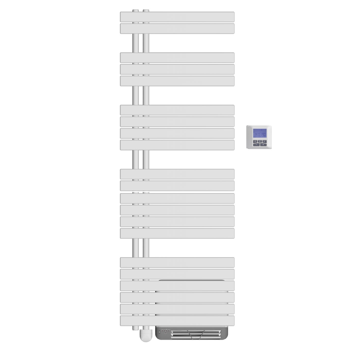 Adapté aux salles de bains de tailles moyennes OSYA se décline en 2 puissances de 500 et 750W, boostées par une soufflerie intégrée de 1000W , pour les montées en température rapides et un séchage accéléré . La régulation électronique programmable est assurée par un boitier de contrôle à distance à liaison radio , qui peut être positionné dans la pièce pour avoir le réglage à portée de main.* La soufflerie de 1000W est temporisée de 15 minutes à 2 heures , elle est équipée d'un filtre anti-poussière nettoyable avec témoin d'alerte. Finition blanc brillant lisse.