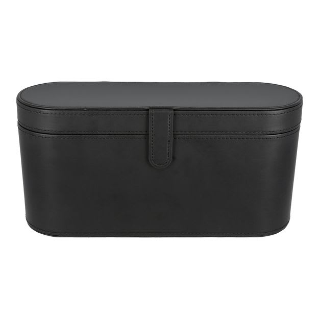 Boîte à sèche-cheveux Adesign Charme : Élégante et pratique, cette boîte noire en cuir synthétique avec couvercle magnétique et intérieur en velours assure un rangement sophistiqué et protecteur pour les sèche-cheveux dans les hôtels.