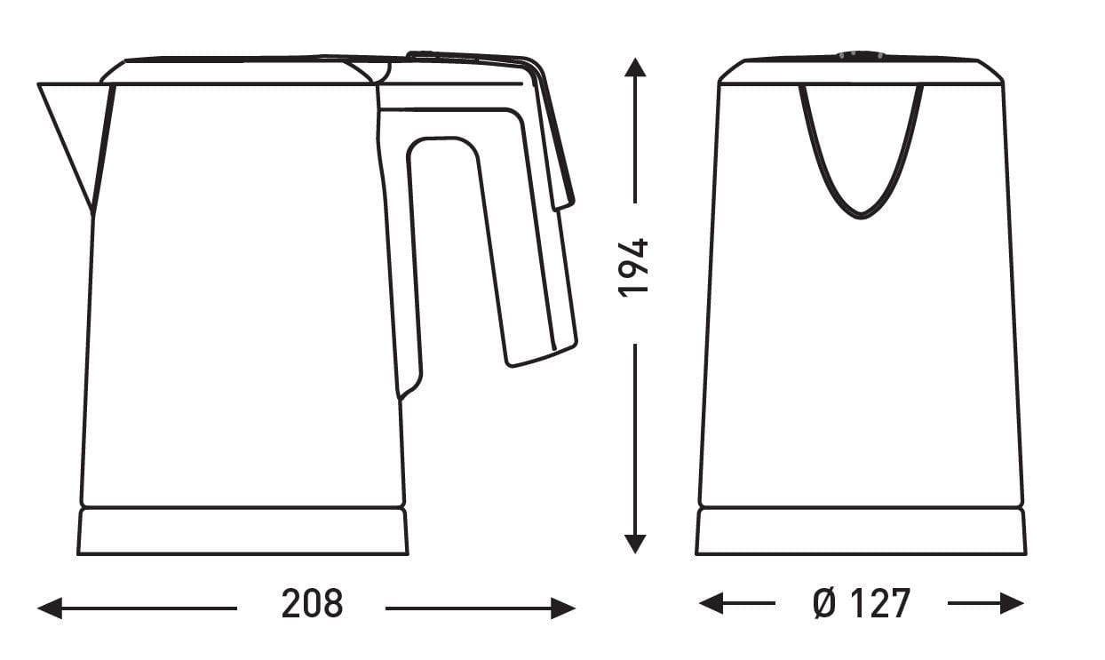 Bouilloire DUCHESSE 0,8L inox brossé 1250 W avec un arrêt automatique à l'ébullition et à vide. Rotation à 360° sur son socle et témoin de fonctionnement. La longueur du cordon est de 70 cm.