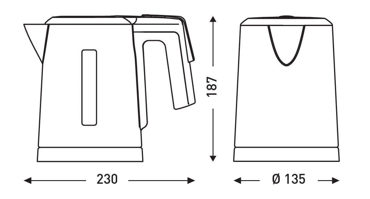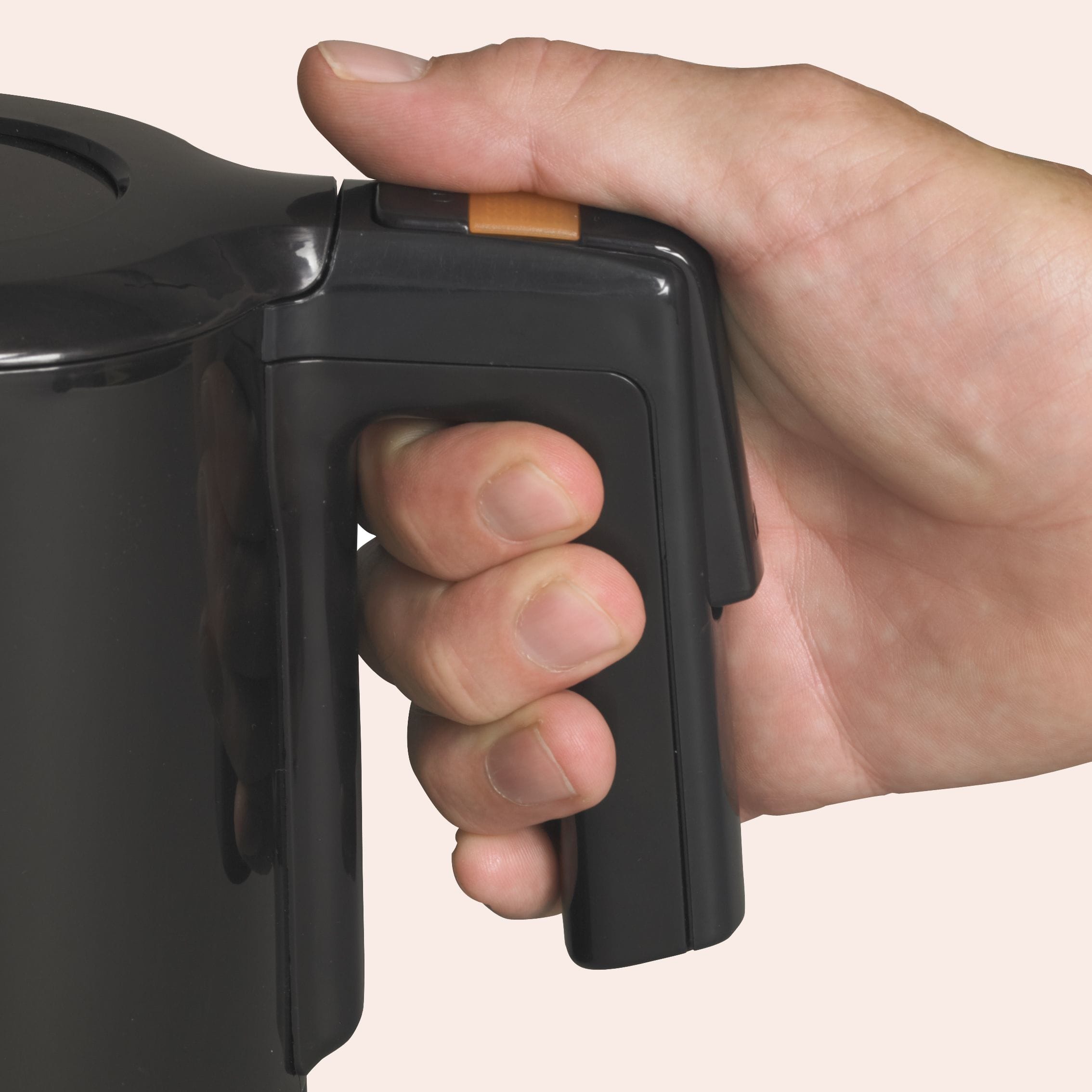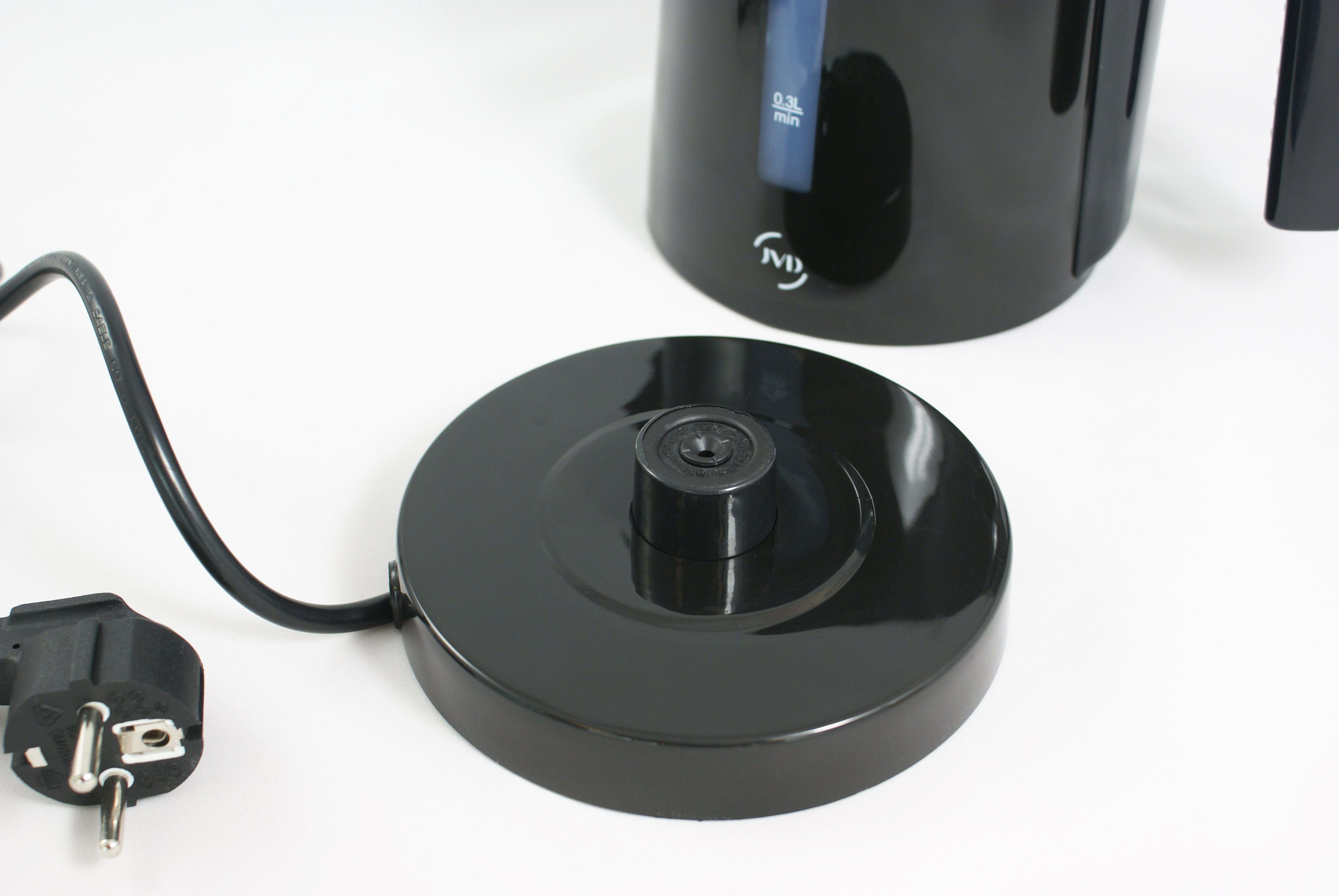 Bouilloire Duchesse 0,8L noire 1250 W. Arrêt automatique à l'ébullition et à vide et rotation à 360° sur son socle. Equipée d'un témoin de fonctionnement, d'une longueur de cordon de 60 cm et d'une visualisation du niveau d'eau.