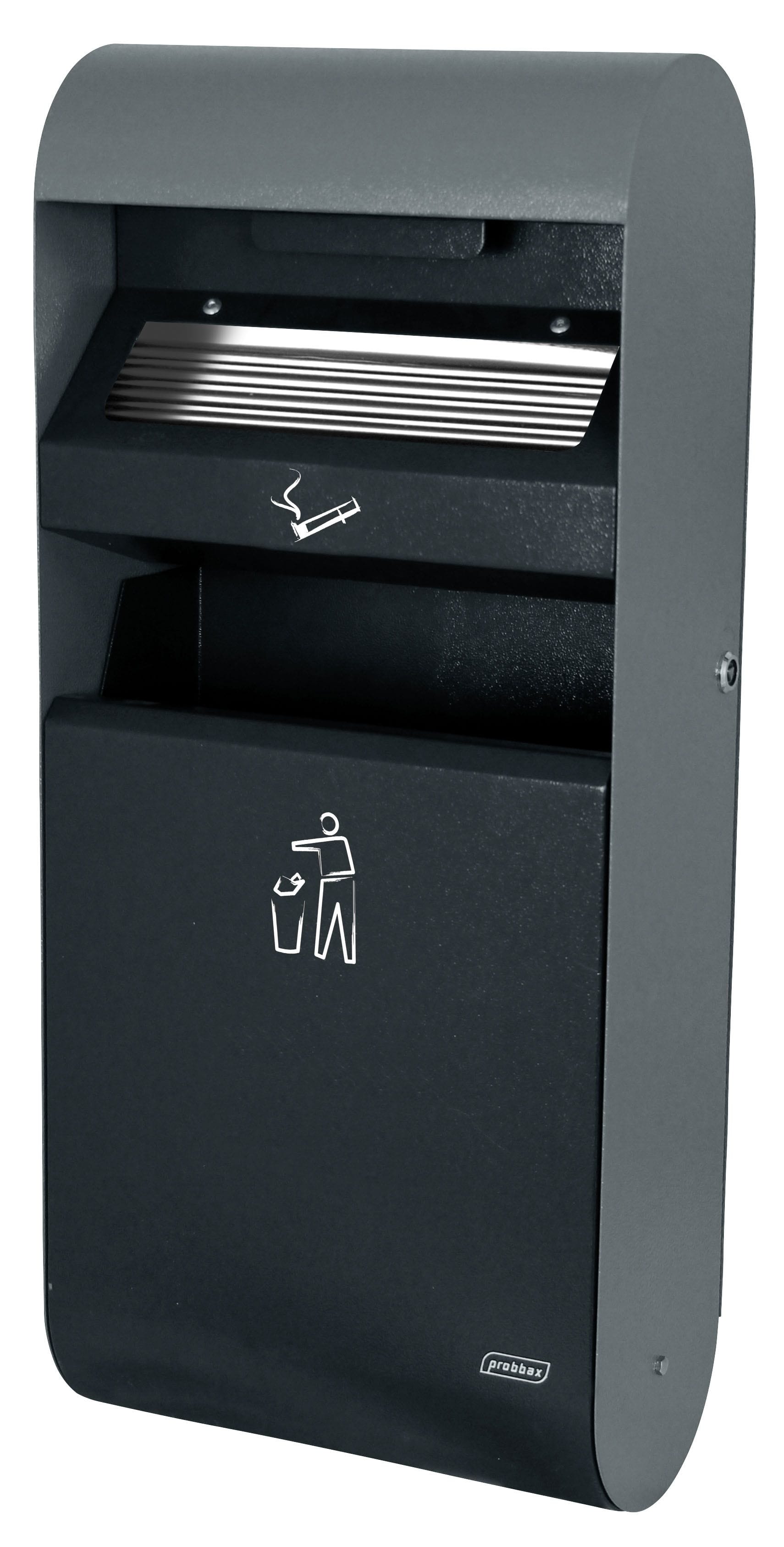 Cendrier mural de 3L avec Collecteur de 14L. Adapté pour un usage extérieur (acier galvanisé). Bac intérieur en zinc. Kit de fixation murale inclus. La capacité de Cendrier est d'environ 900 mégots.
