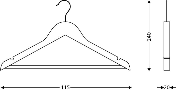 Cintre à pinces en bois naturel pour dressing avec barre et encoches.
