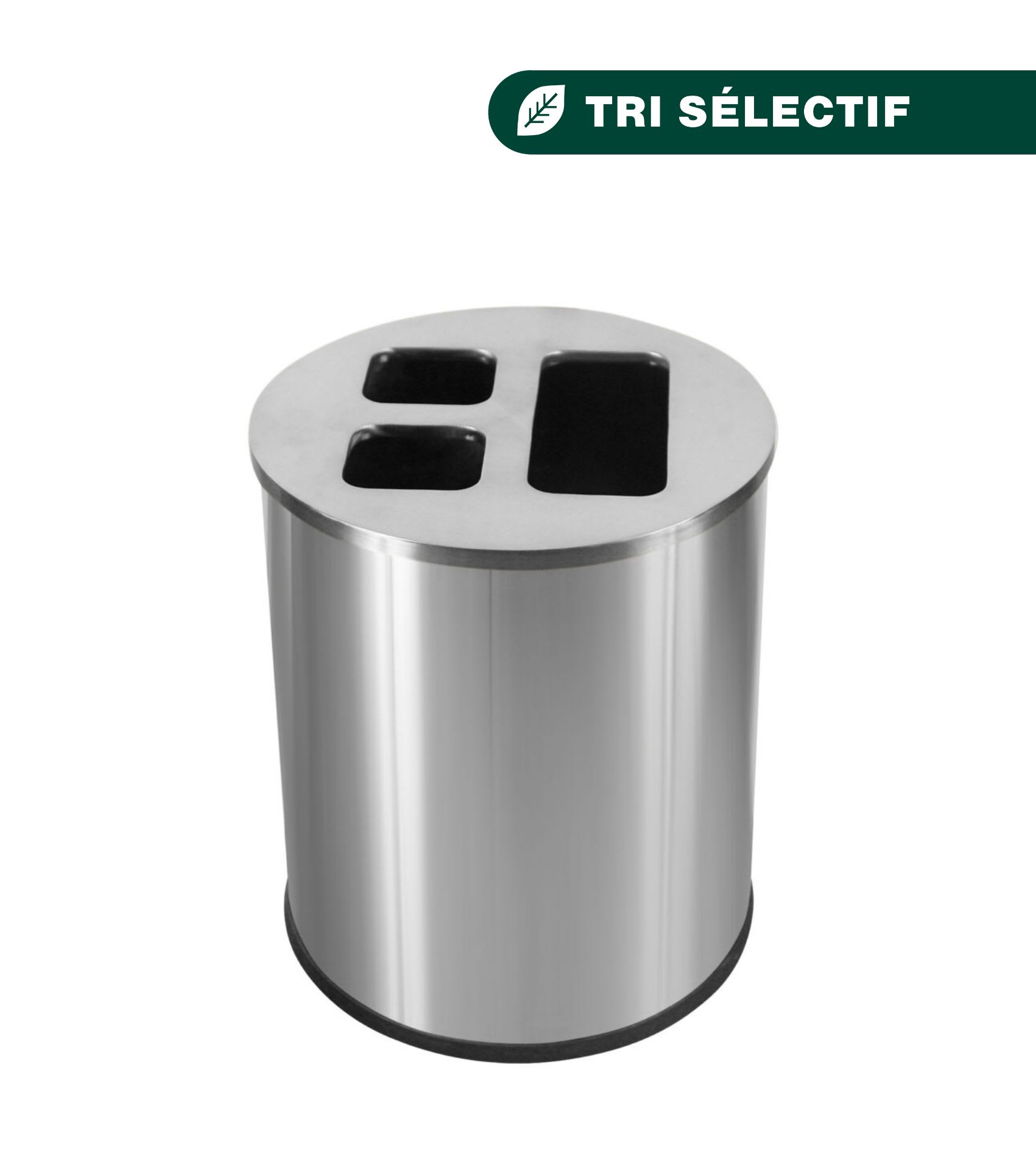 Collecteur 40L Inox brossé avec 3 bacs dont 2 compartiments de 10L et 1 compartiment de 20L. Les bacs sont amovibles. Autocollants de tri inclus.