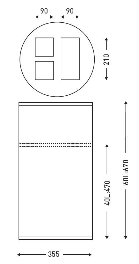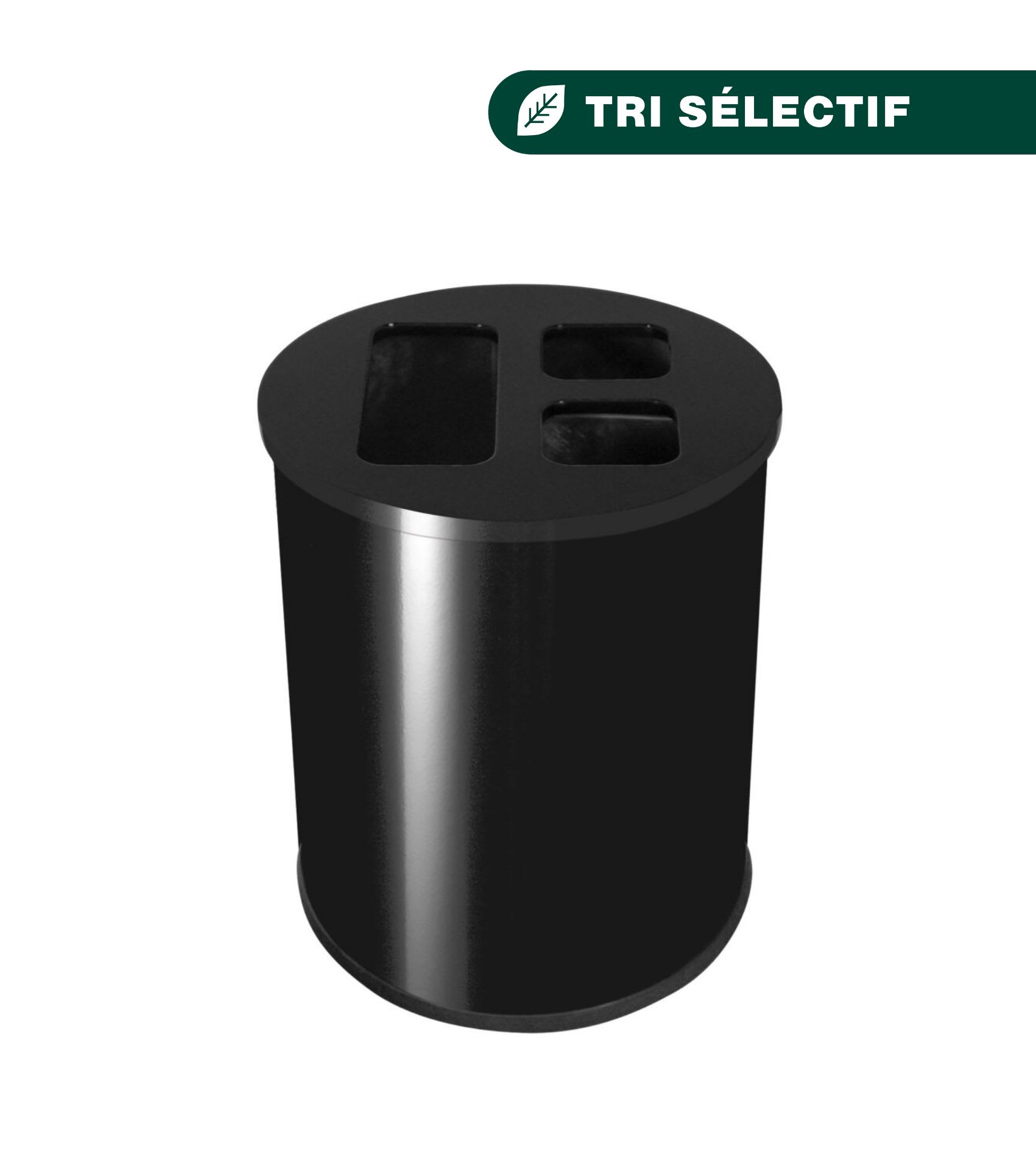Collecteur 40L noir avec 3 bacs dont 2 compartiments de 10L et 1 compartiment de 20L. Les bac sont amovibles. Autocollants de tri inclus.