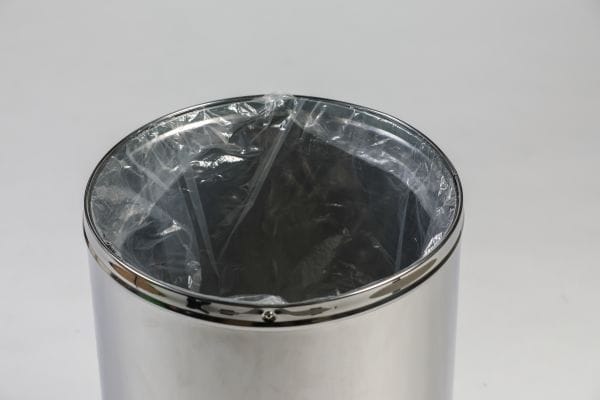 Collecteur Push 40L noir équipé d'un clapet en Inox silencieux monté sur ressort et d'un support de sac. Protection caoutchouc à la base.