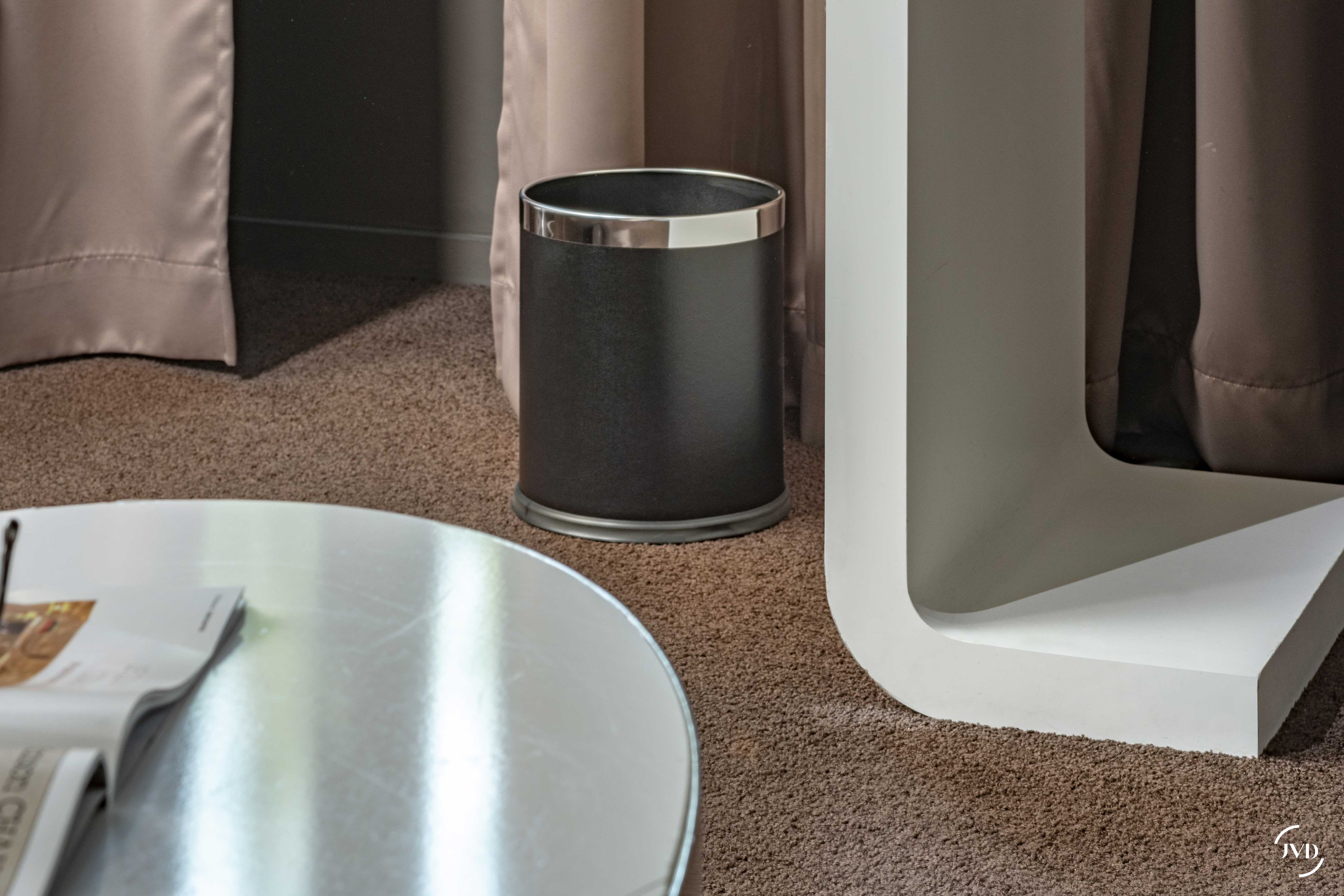 CORBEILLE effet cuir noir d'une capacité de 10L avec une simple paroi.