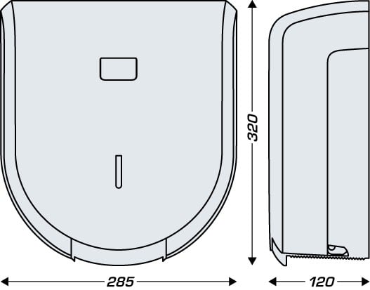 DISTRIBUTEUR de Papier Hygiénique CLEANLINE JUMBO pour bobine de 400m avec un capot ABS gris métallisé et un chassis ABS gris. Mandrin de diamètre 45mm. Fait à 100% en plastique recyclé