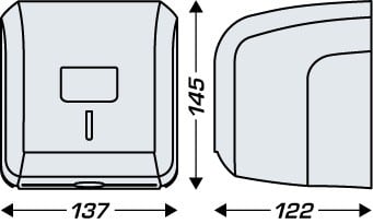 DISTRIBUTEUR Papier Hygiénique CLEANLINE MIXTE MINI avec un capot ABS blanc et un chassis ABS gris. Capacité pour 2 paquets. Matière : 100% de plastique recyclé