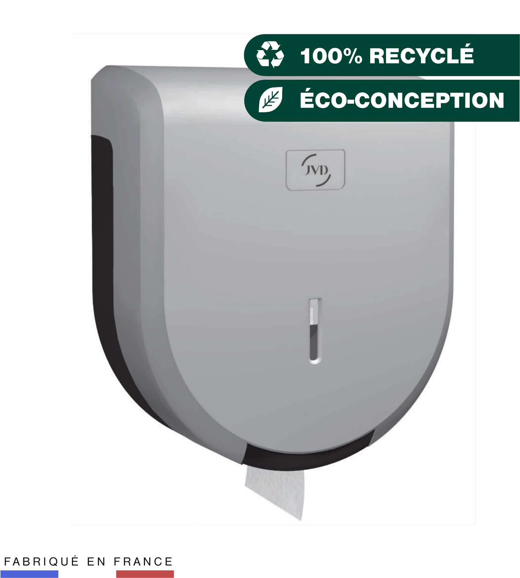 Distributeur de Papier Hygiénique Cleanline JUMBO pour bobine de 200m Gris métal. Mandrin de diamètre 45mm. Fait à 100% en plastique recyclé