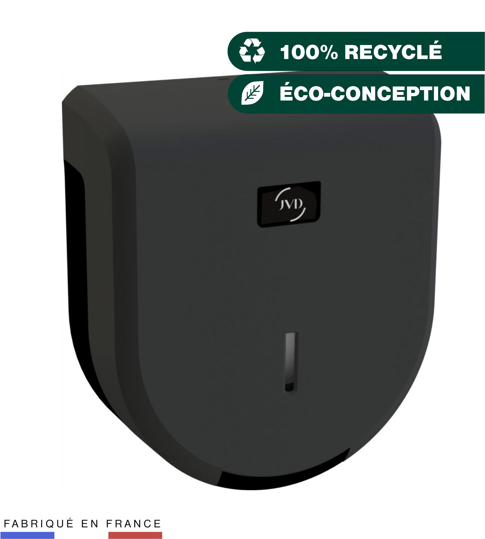 Distributeur de Papier Hygiénique Cleanline JUMBO pour bobine de 200m noir mat. Mandrin de diamètre 45mm. Fait à 100% en plastique recyclé