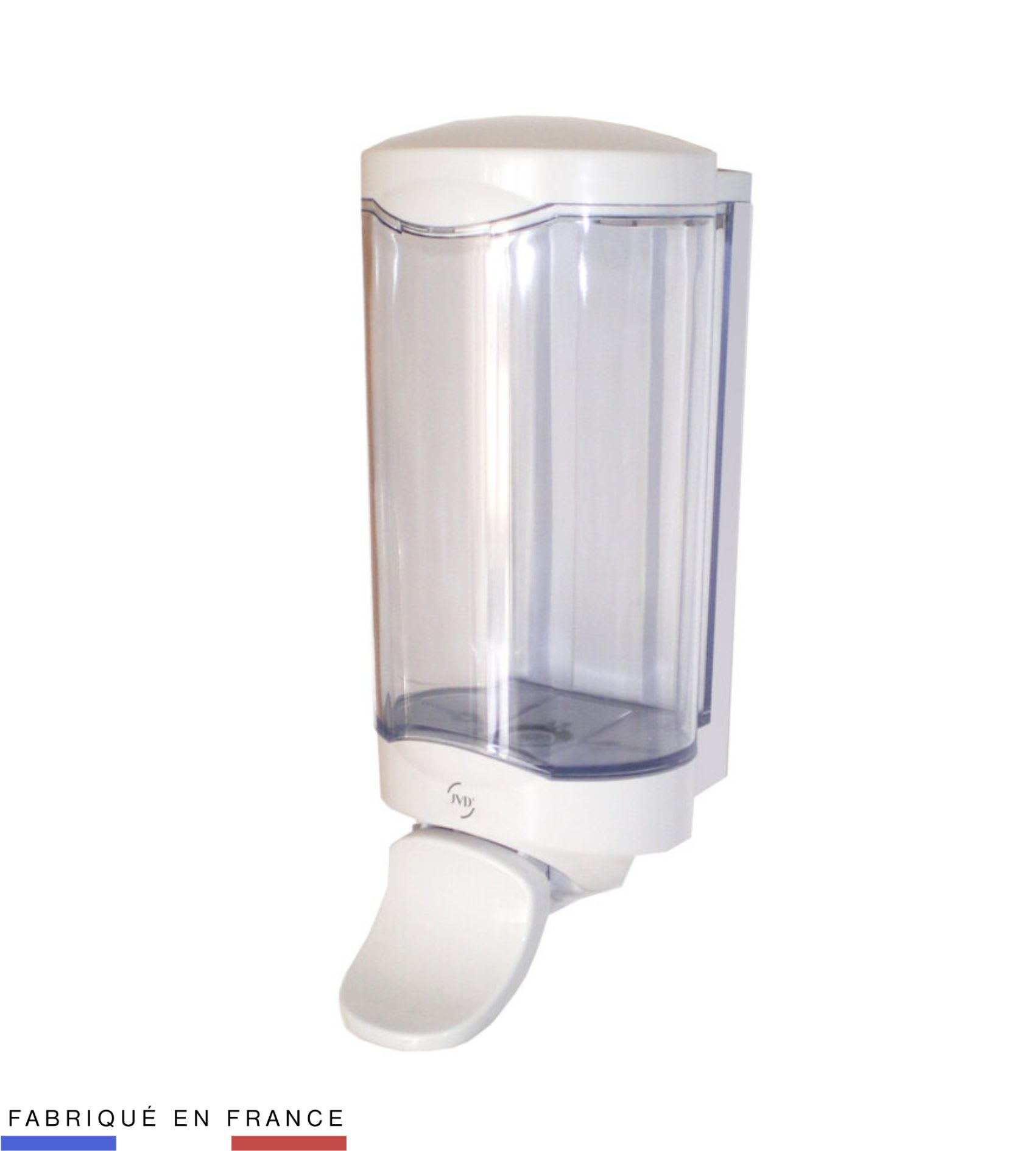 Distributeur de Savon Crystal 1 L avec palette. Equipé d'une pompe silicone longue durée. Débit de 1 ml de savon par pression.