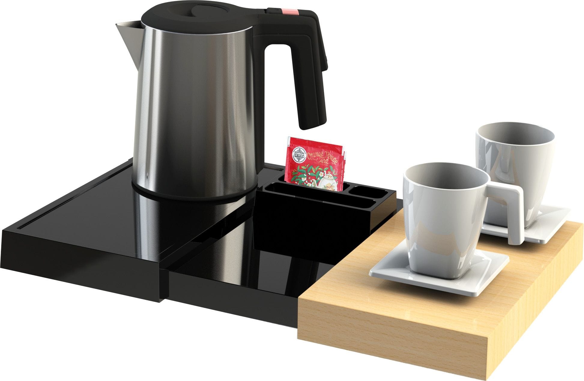 Orchestro Second Plateau d'accueil modulable en melamine noir permettant d'accueilir une machine à café ou une bouilloire.
