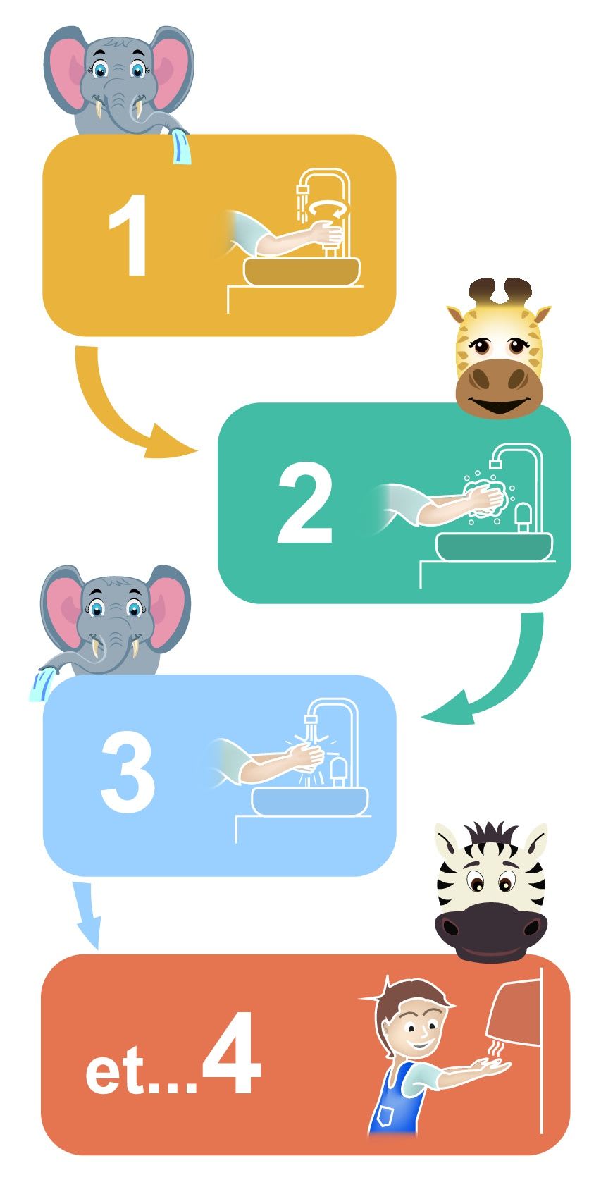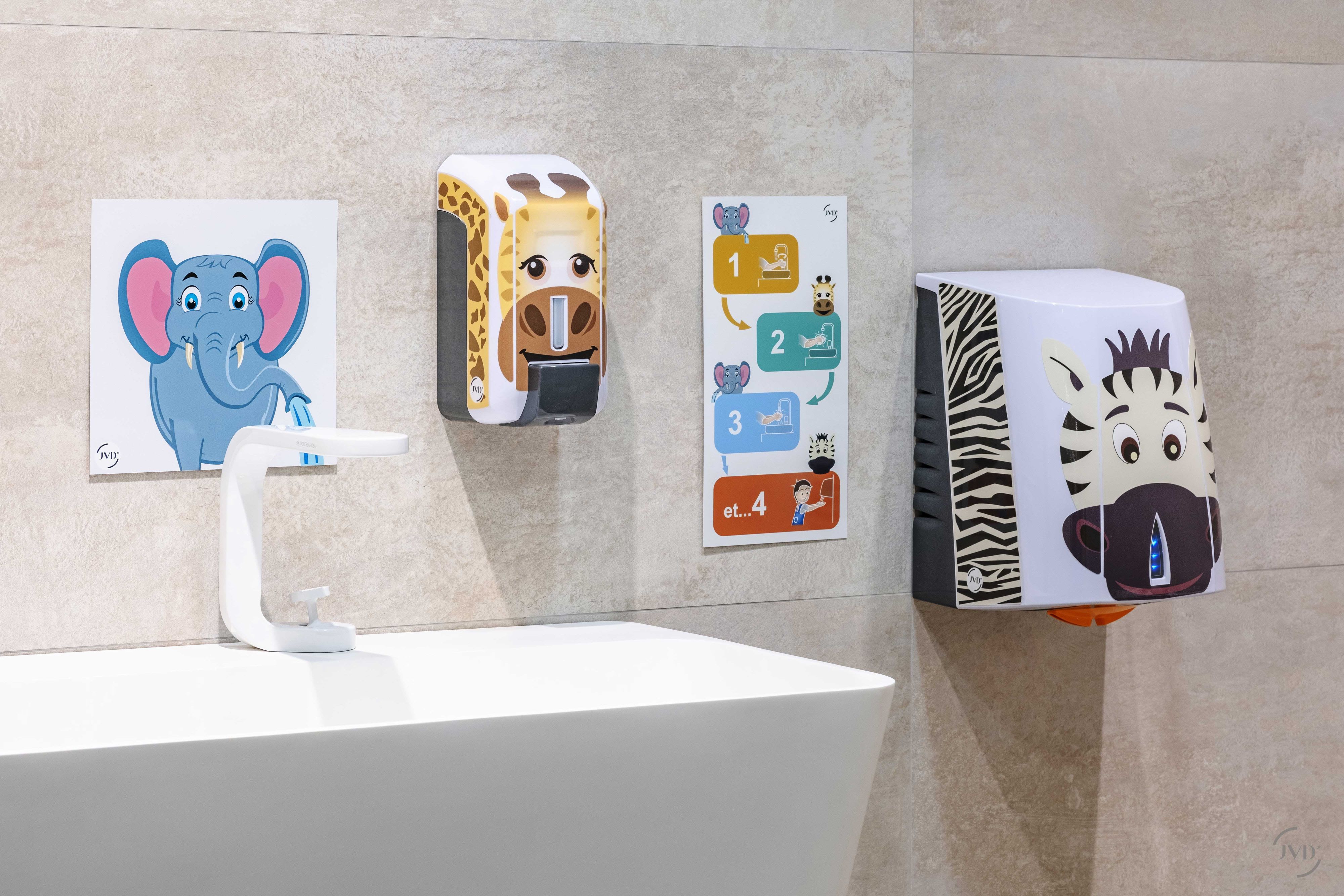 Permet aux enfants d'apprendre facilement à se laver les mains avec un distributeur de savon en gel pour enfants Cleanline et les plaques pédagogiques incluses