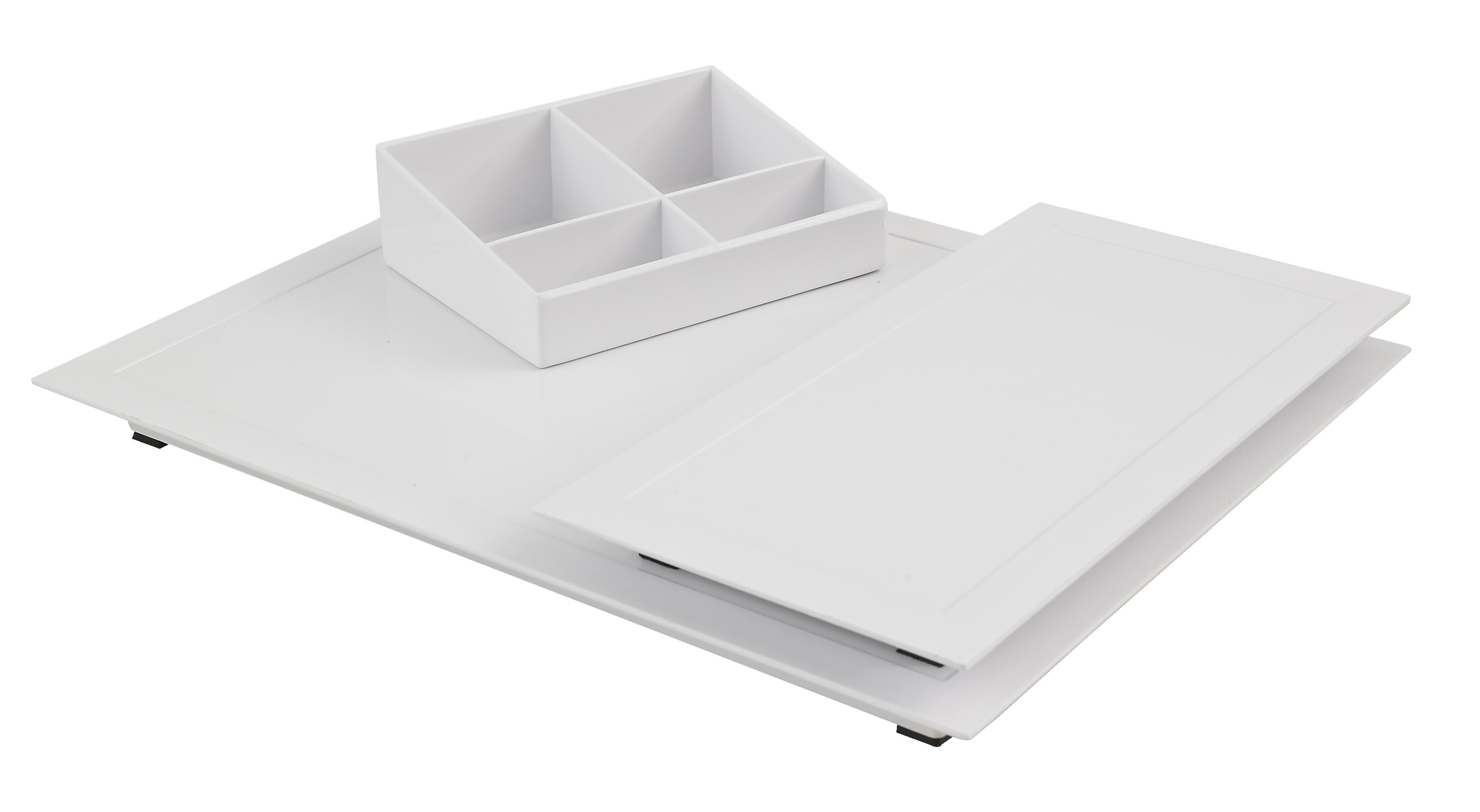 Plateau ZEN LINE blanc résistant aux brûlures avec une finition anti-tâche. Possibilité d'intégrer le support de la bouilloire JVD.