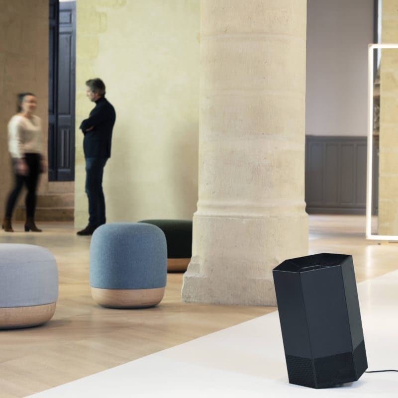 Purificateur d'air SHIELD Noir Mat fabriqué en France, conforme à la norme NF B44200 couvrant une surface de 60m2