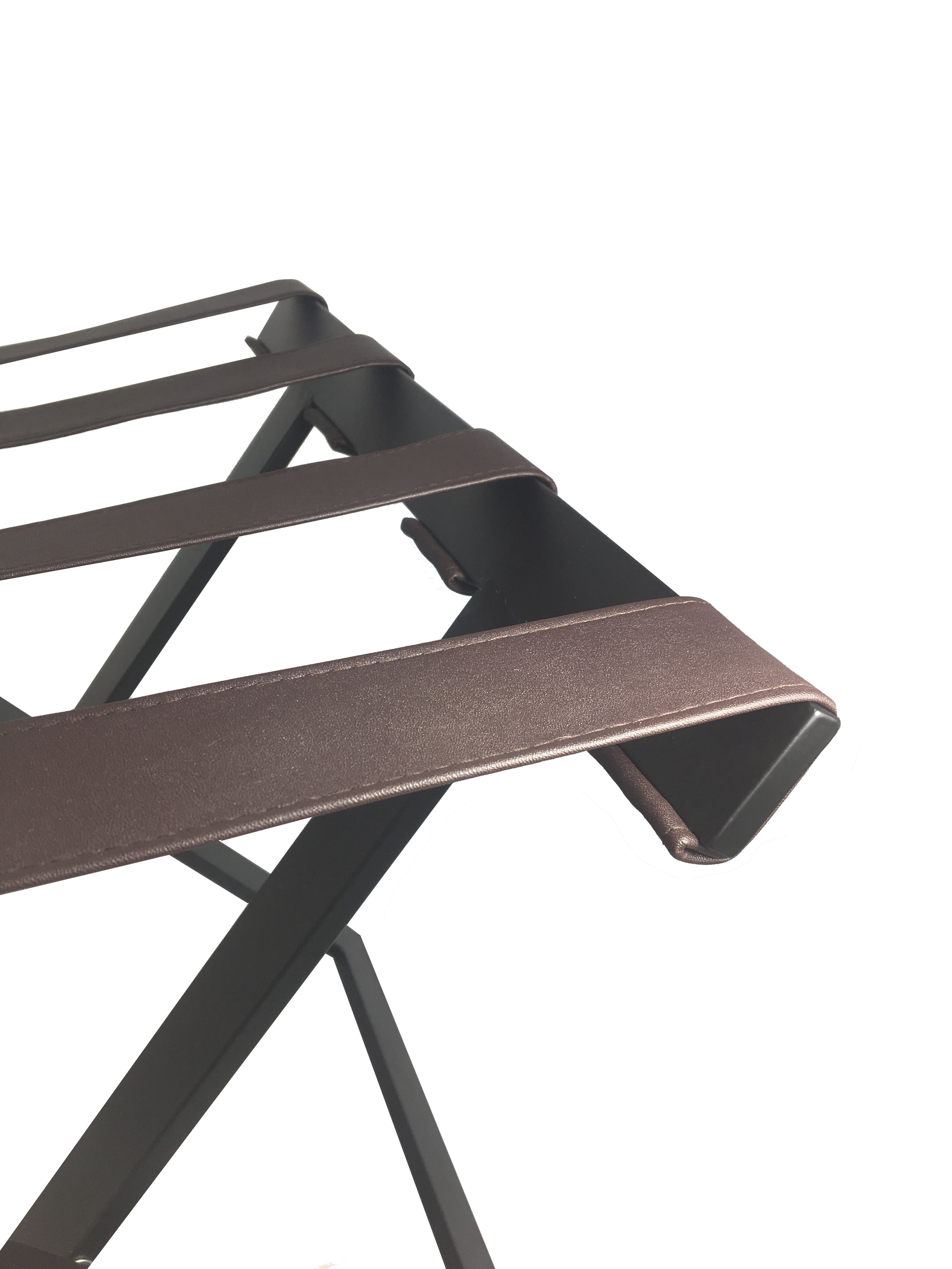 Rack à bagage métal noir, design compact et ultra résistant avec 4 sangles en cuir de synthèse.