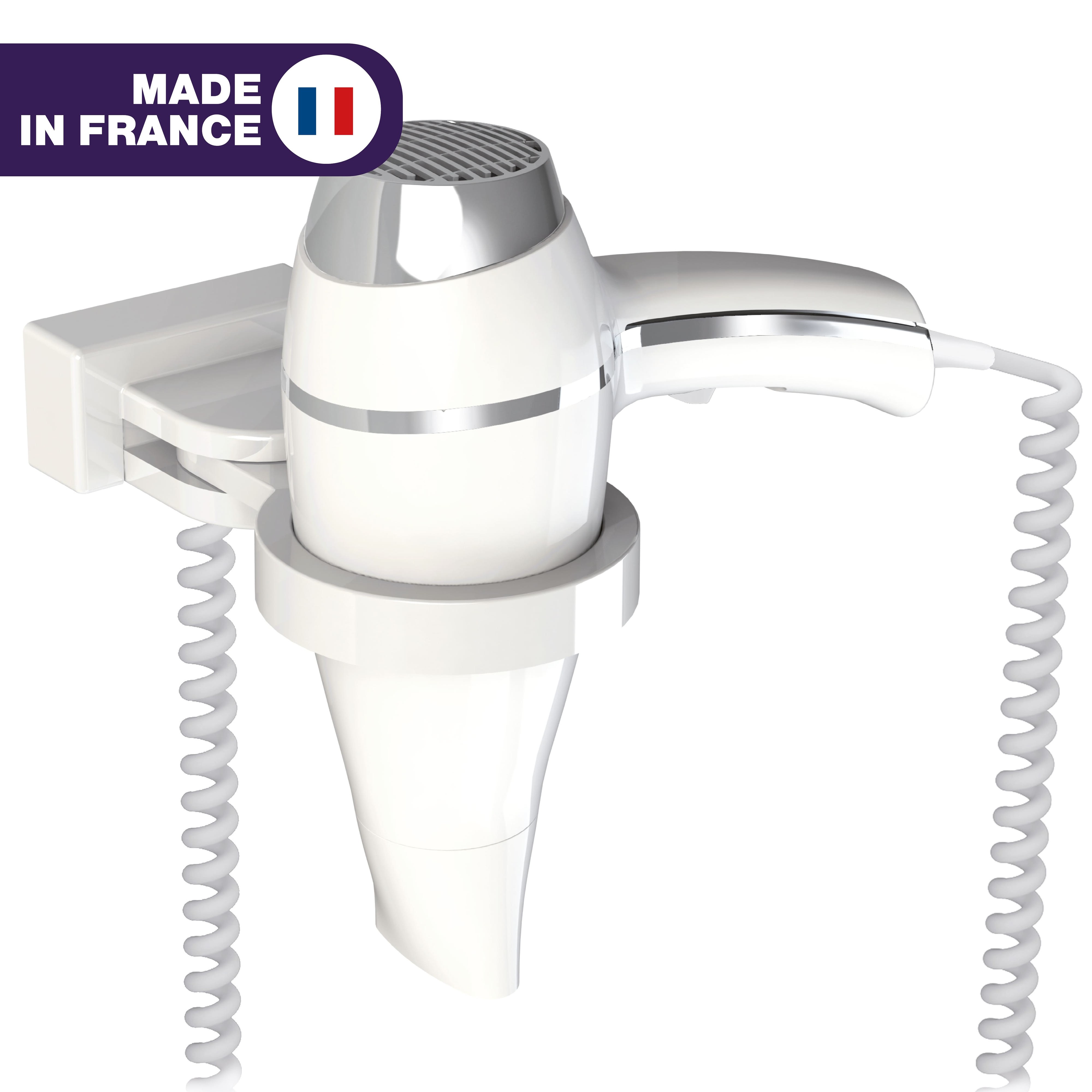 Kit Sèche-Cheveux ALTEO blanc 1875 W + Support universel, pré-câblé pour une installation rapide, orientable à 180°. Made in FR.