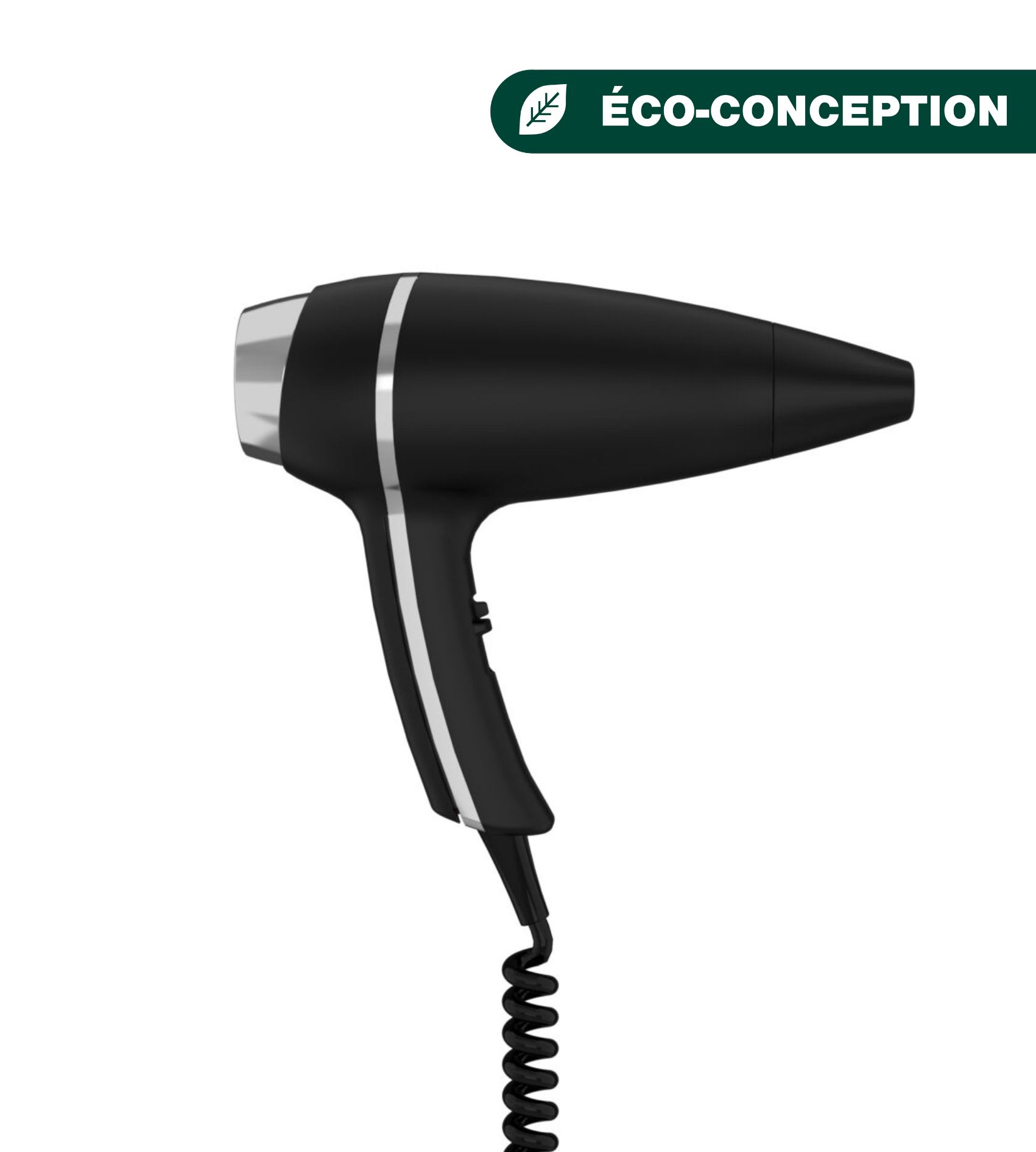 Sèche-Cheveux Alteo pistolet noir mat 1875 W, mise en marche par simple prise en main grâce à sa poignée brevetée LighTouch. 6 configurations de séchage et équipé d'un système ionisant. Design exclusif JVD.