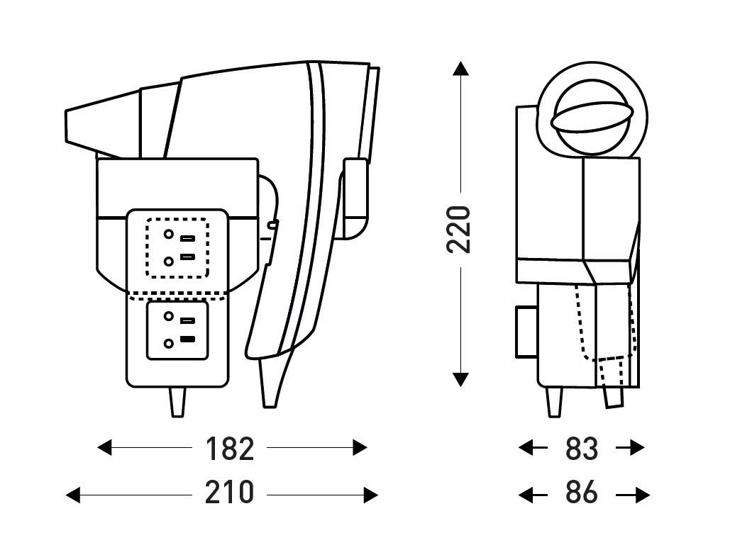 Sèche-Cheveux Brittony blanc + support frontal base, 1600 W,mise en marche par simple prise en main grâce à sa poignée brevetée LighTouch. 6 configurations de séchage et équipé d'un système ionisant. Installation volume 3.