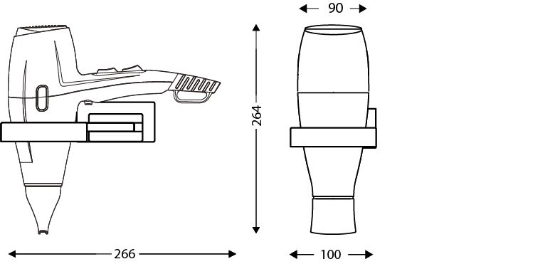 Kit Sèche-Cheveux Calisto noir 2000 W + Support universel, pré-câblé pour une installation rapide, orientable à 180°. Made in France.