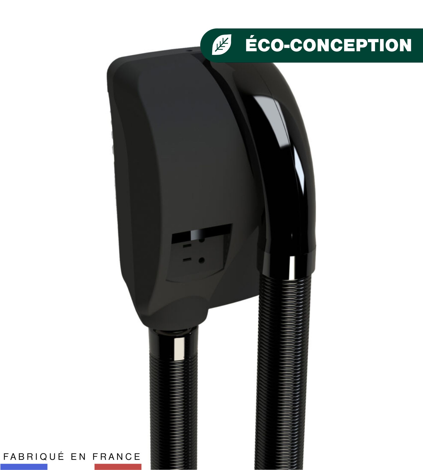 Sèche-Cheveux CARAÃBE base avec Prise Rasoir 230 V, puissance 1000 W, manchon breveté pour faciliter la coiffure. Installation dans le volume 2. Garantie 3 ans. Noir mat.