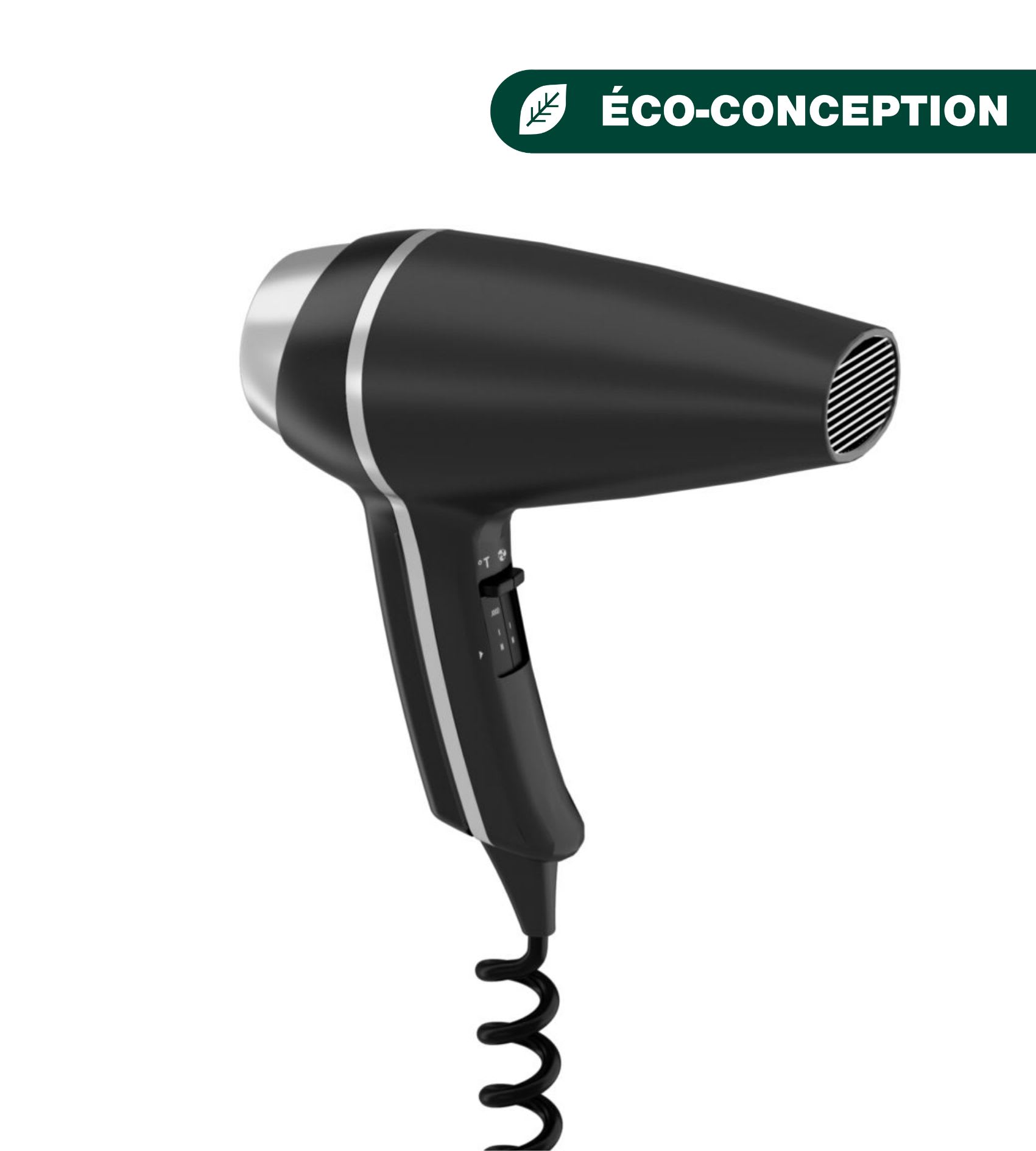Sèche-Cheveux Clipper pistolet noir 1400 W, mise en marche par simple prise en main grâce à sa poignée brevetée LighTouch. 6 configurations de séchage et équipé d'un système ionisant. Concentrateur intégré à la forme.