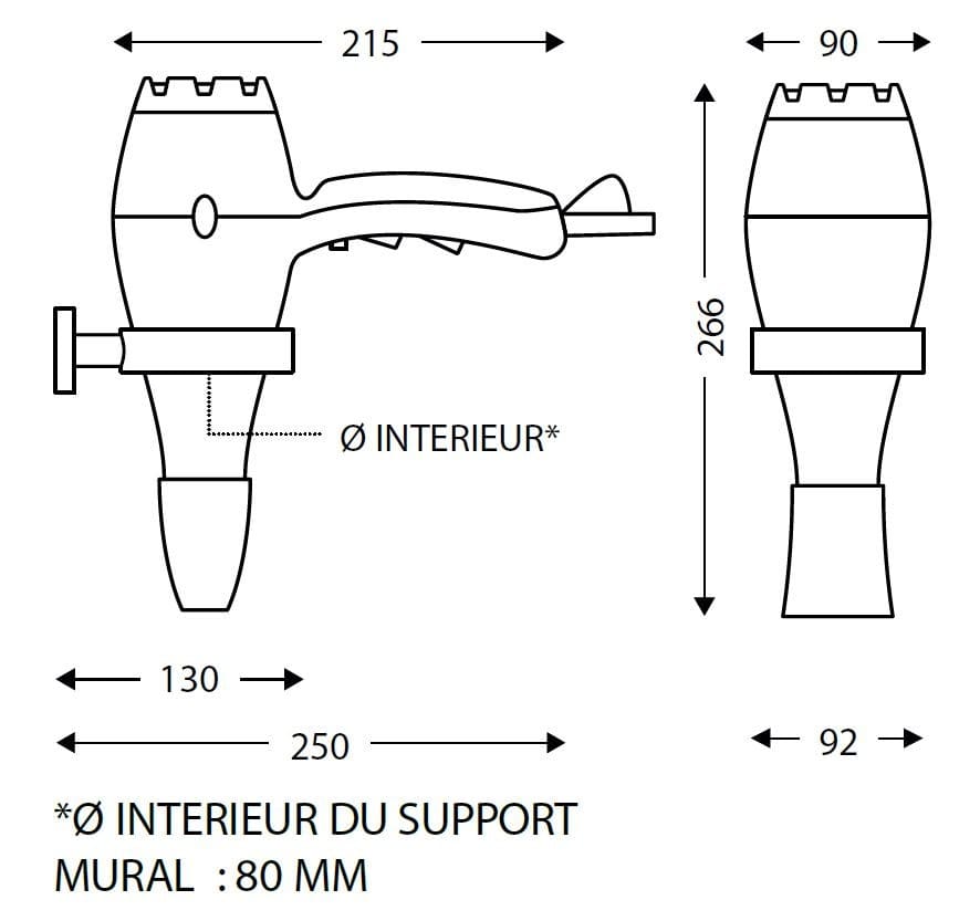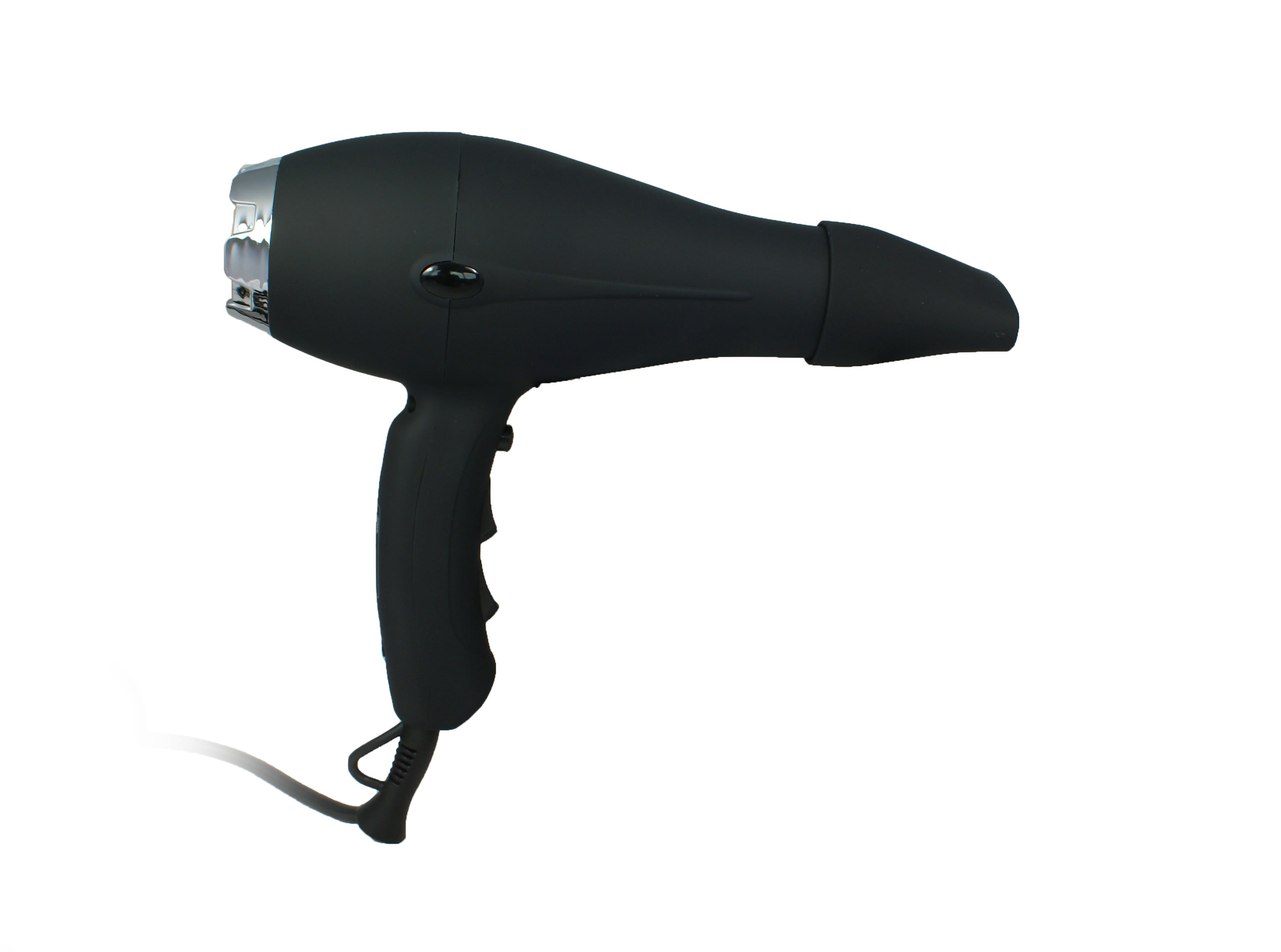 Sèche-Cheveux IBIZA pistolet noir mat 1875 W, avec 6 configurations de séchage et un système ionisant. Installation volume 2.