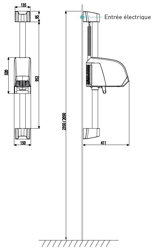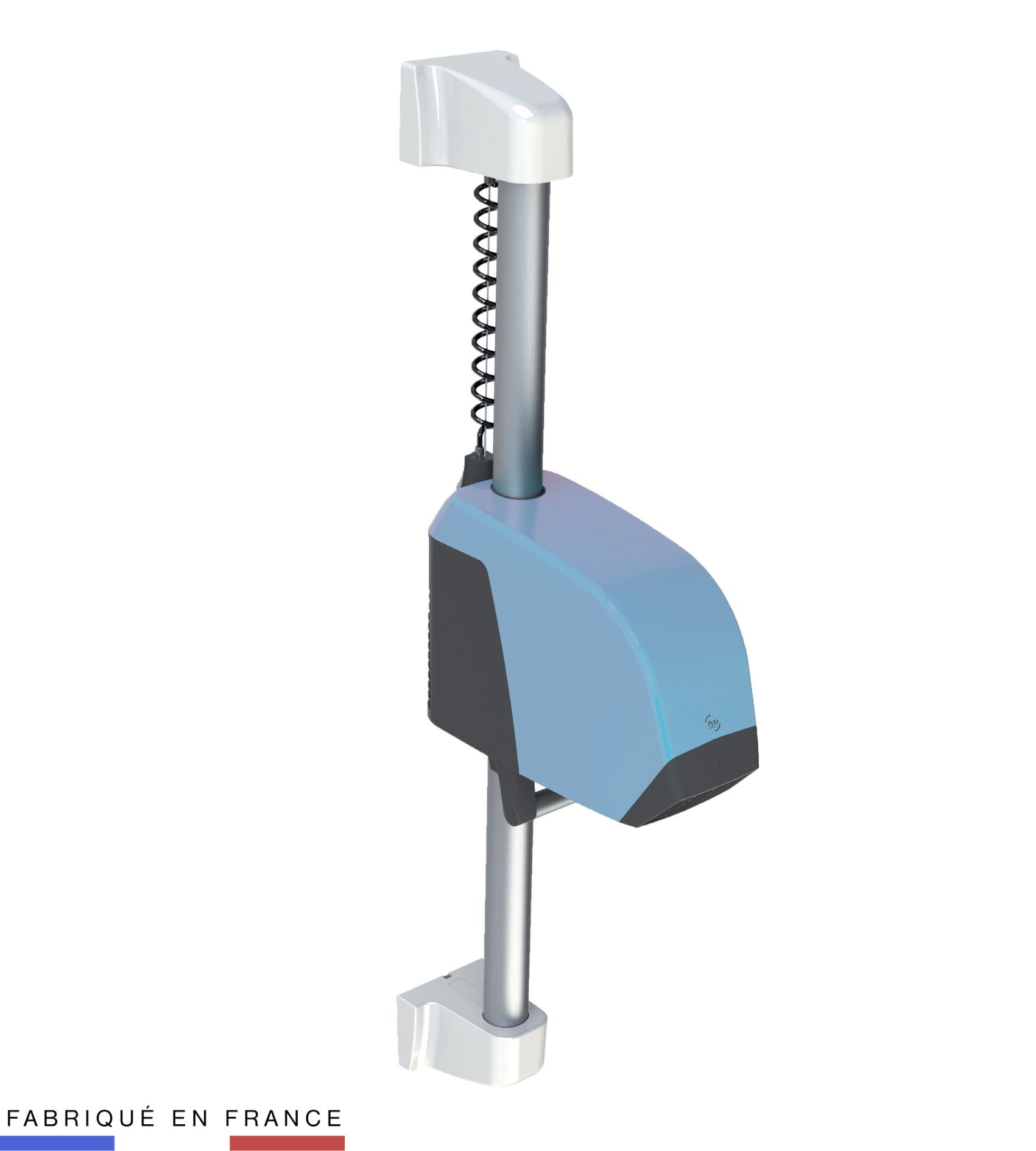 Sèche-Cheveux Neptune bleu pour piscines et salles de sport, résistant en atmosphère chlorée et pourvu d'un moteur à induction pour une utilisation intensive. S'active par détection automatique. Hauteur réglable et ergonomique (rotation à 180°). Garantie 3 ans.