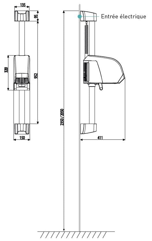 Hauteur ajustableRotation à 180°Silencieux (70 dB)Longévité (moteur à induction)Résistance en atmosphère chloréeBouton ON/OFF pour faciliter la maintenanceDétection automatique
