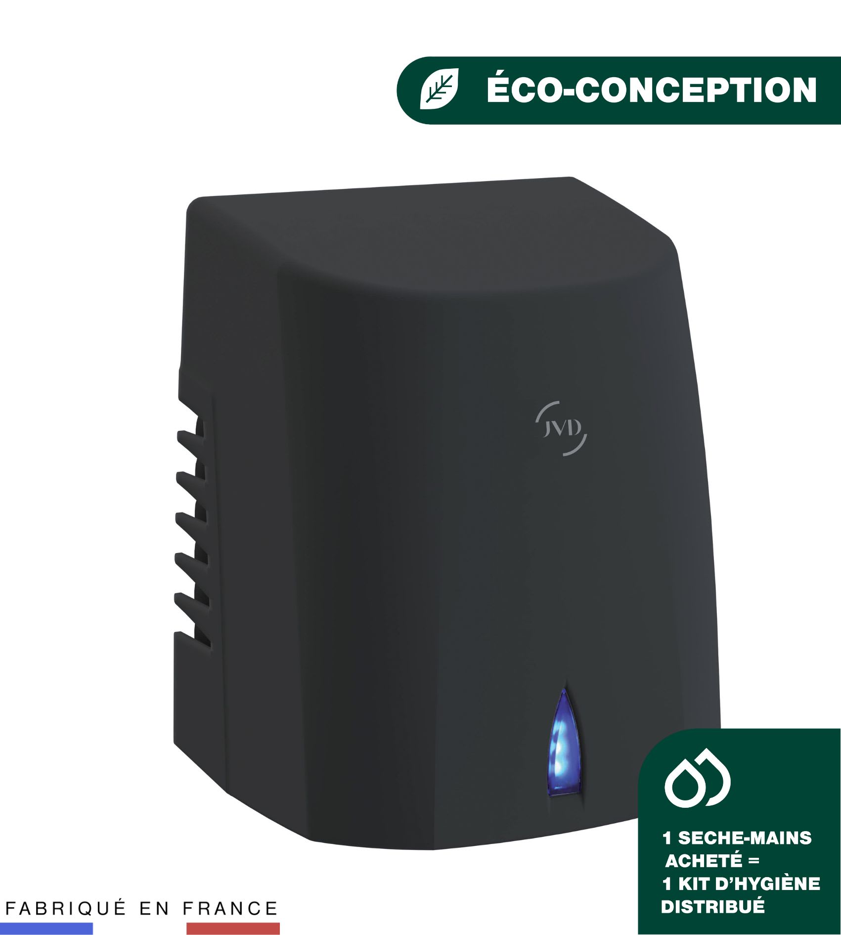 Des objets que vous manipulez chaque jour, sans vraiment y penser. Des sèche-mains devenus iconiques, jusqu’aux distributeurs de savon. Dans chaque restaurant, café, aéroport ou bureau, les équipements de l’univers Hygiène de JVD accompagnent les moments du quotidien. Un grand nombre de nos produits Hygiène sont certifiés durables et sont produits en France, à Rezé, dans le respect de notre planète pour les générations futures.