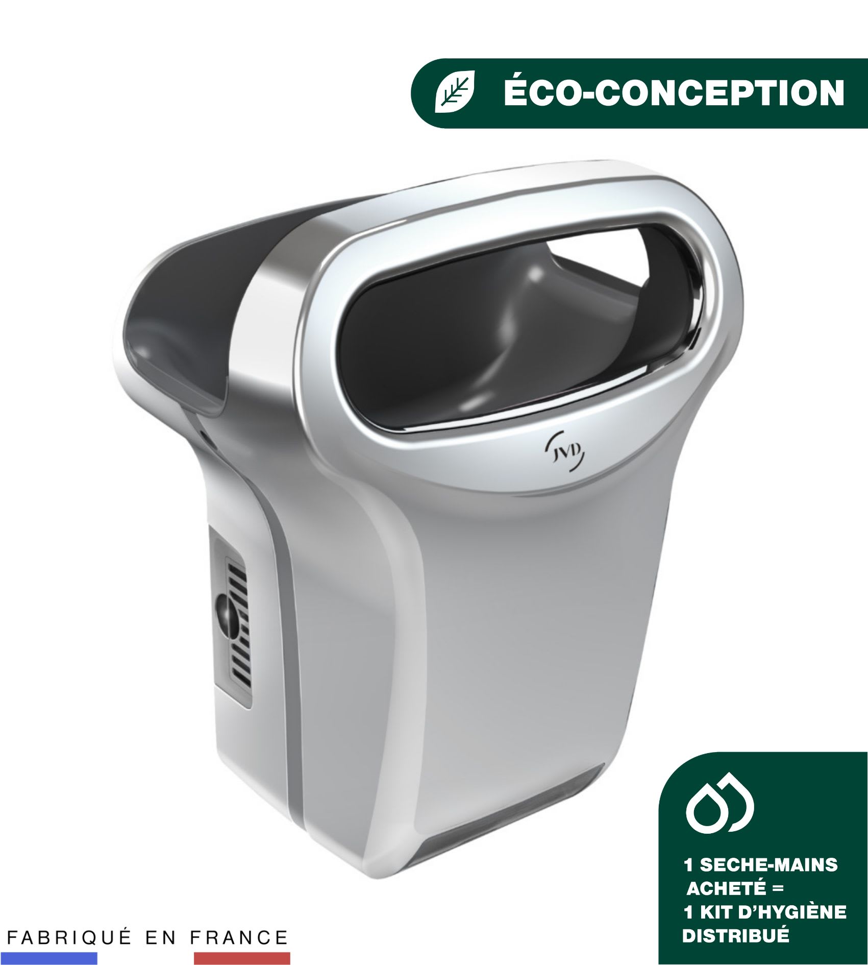 Des objets que vous manipulez chaque jour, sans vraiment y penser. Des sèche-mains devenus iconiques, jusqu’aux distributeurs de savon. Dans chaque restaurant, café, aéroport ou bureau, les équipements de l’univers Hygiène de JVD accompagnent les moments du quotidien. Un grand nombre de nos produits Hygiène sont certifiés durables et sont produits en France, à Rezé, dans le respect de notre planète pour les générations futures.