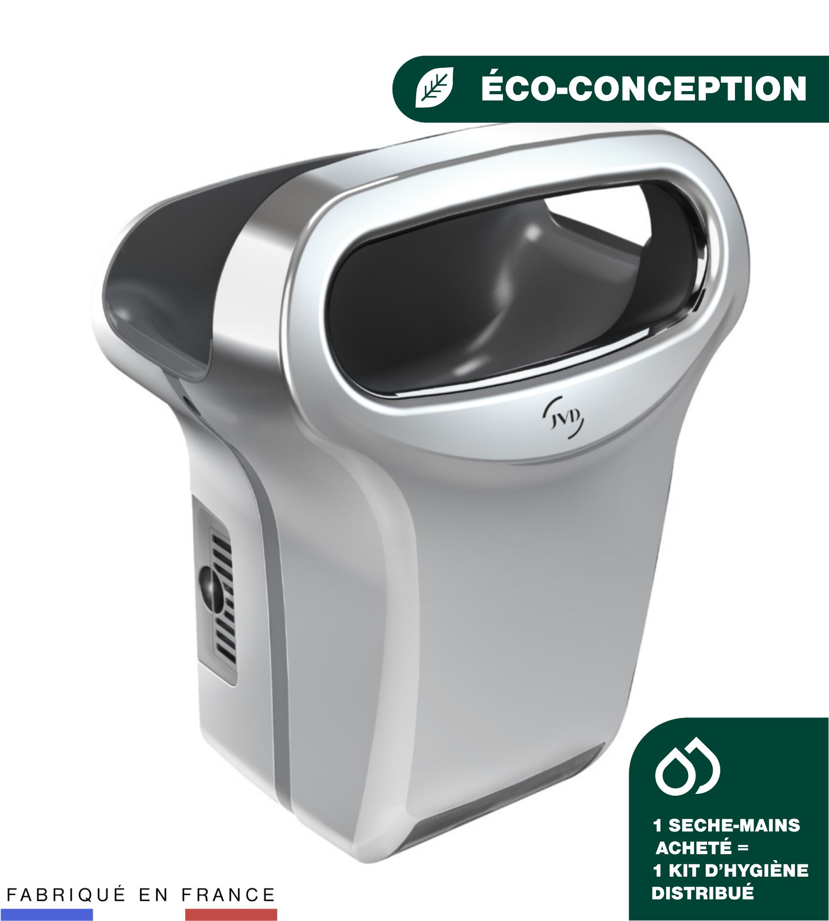 Des objets que vous manipulez chaque jour, sans vraiment y penser. Des sèche-mains devenus iconiques, jusqu’aux distributeurs de savon. Dans chaque restaurant, café, aéroport ou bureau, les équipements de l’univers Hygiène de JVD accompagnent les moments du quotidien. Un grand nombre de nos produits Hygiène sont certifiés durables et sont produits en France, à Rezé, dans le respect de notre planète pour les générations futures.