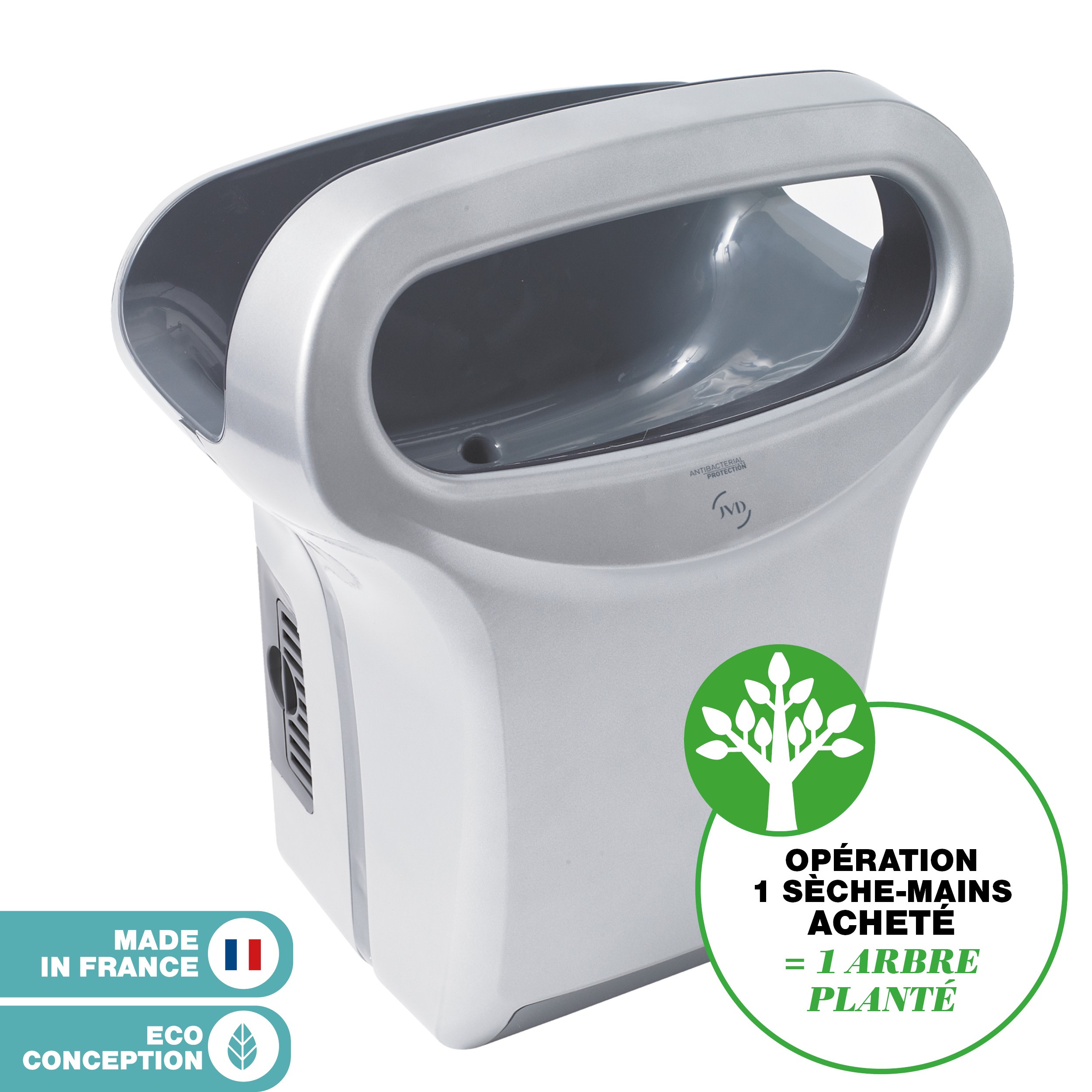 Sèche-Mains EXP'AIR+ Gris automatique à air pulsé équipé d'un moteur brushless. Anti-vandalisme avec un capot en aluminium et adapté aux personnes à mobilité réduite. Garantie 5 ans.