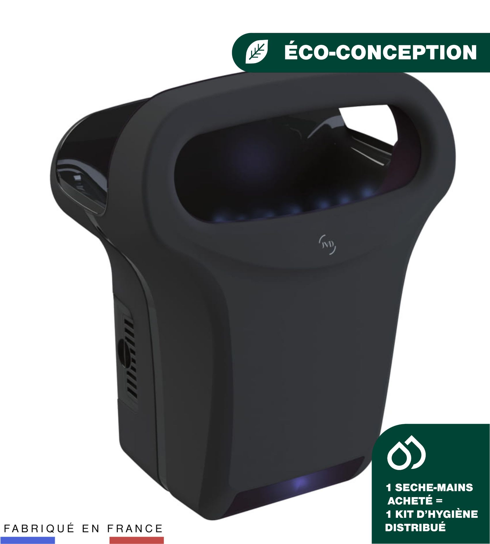 Des objets que vous manipulez chaque jour, sans vraiment y penser. Des sèche-mains devenus iconiques, jusqu’aux distributeurs de savon. Dans chaque restaurant, café, aéroport ou bureau, les équipements de l’univers Hygiène de JVD accompagnent les moments du quotidien. Un grand nombre de nos produits Hygiène sont certifiés durables et sont produits en France, à Rezé, dans le respect de notre planète pour les générations futures.