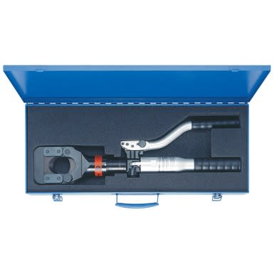 Cisaille coupe câbles hydraulique manuel pour câbles en cuivre, en aluminium et acier (ACSR), maxi ø 45 mm. Force 60kN. Tête guillautine ouvrante et tournante,
