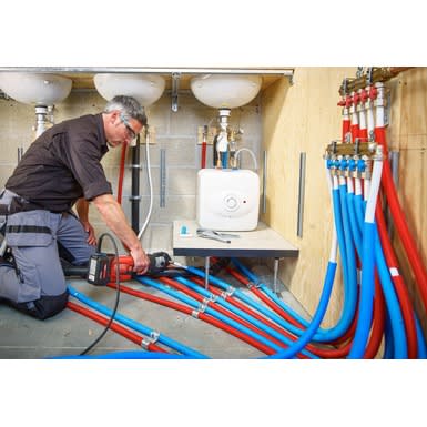 L’outil de sertissage en ligne RP 351 est conçu pour fonctionner rapidement et sans interruption dans les espaces les plus confinés.