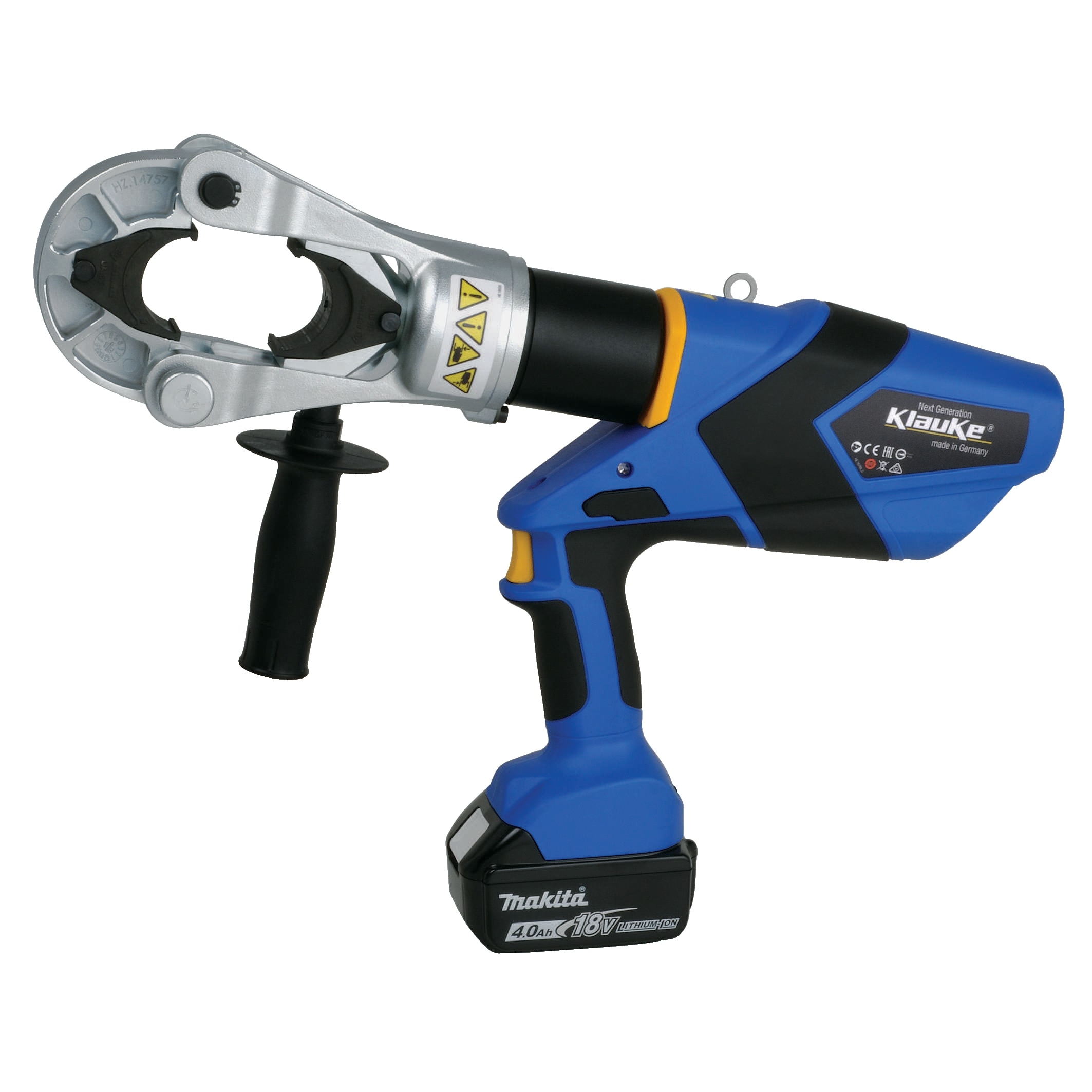 Presse électro-hydraulique 135 KN. Fonctionne avec un accu Li-Ion 18V/4Ah Makita pour recevoir les matrices de série "K13" de 10 à 400 mm², et série "K15" pour le 500 et 600mm². Course: 50,8mm. Tête ouvrante et pivotante.